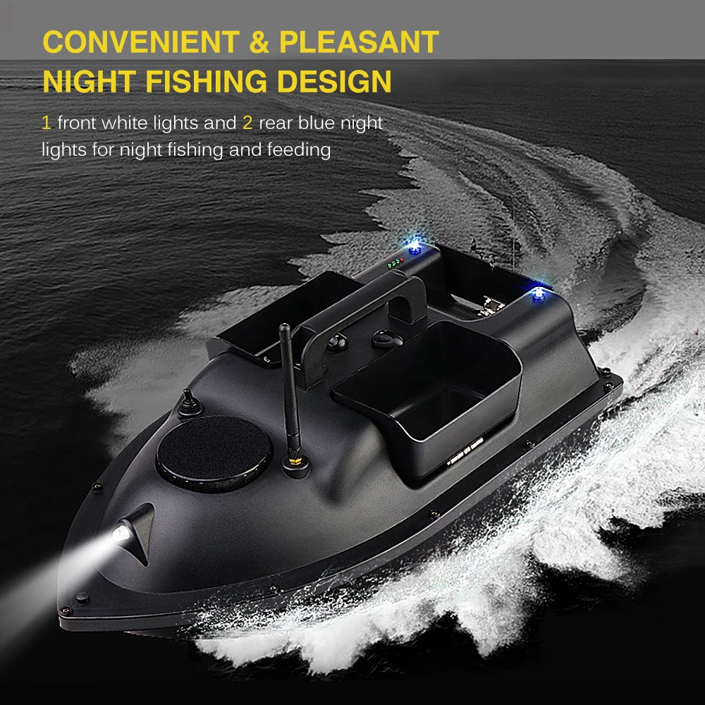 Беспроводное управление позволяет выпустить приманку далеко в озере, реке и водохранилище. 3 контейнеры для наживки могут вмещать около 4,4 фунта приманки для всех игровых рыб. Простота в эксплуатации для любителей рыбалки или начинающих, а также для детей.Особенности:Функция GPS помогает установить 4 произвольных точки позиционирования, и лодка может быть вперед и назад на основе точки, которую вы устанавливаете.При обнаружении потери сигнала или низкого заряда батареи лодка автоматически вернется в исходное положение через 15 секунд. Не беспокойтесь о потере.ЖК-дисплей пульта будет отображать несколько данных для вашего, таких как питание батареи, расстояние, компас, положение и светильник.3 контейнера для наживки с около 4.4lb несущей способностью для большего количества наживок.Беспроводное управление и Круизный переключатель с фиксированной скоростью позволяют выпустить приманку далеко. (Дистанционный диапазон: 400-500 метров)Двойные двигатели и двойные пропеллеры делают лодку легкой в спорте и кролировании.1 передние белые огни и 2 задние синие ночные огни для ночной рыбалки и кормления.Лодка приманки питается от перезаряжаемой батареи 5200 мАч (в комплекте).Съемный аккумулятор позволяет легко заряжать отдельно без лодки.Обтекаемый корпус уменьшает Водонепроницаемость и 3-4 уровня устойчивость к волнам.Пульт дистанционного управления питается от двух батарей AAA (в комплекте).Спецификация:Материал: АБС-пластикНесущая способность: кг/2 кг/4,4 фунтов лёгкий нейлоновый тросДистанционный диапазон: 400 - 500 м/437 - 540 ярдовВремя заказа: ≥ 10 часовБатарея лодки-приманки: 1*7,4 v 5200mAh 18650 аккумуляторная батарея (входит в комплект)Пульт дистанционного управления: 4 батарейки типа АА (в комплекте)Размер лодки: 50*25*17 см/19,7*9,8*6,7 дюймовВес: прибл. 1,7 кг/3,7 фунтовРазмер посылка: 56*32*25 см/22,0*12,6*9,8 дюймовВес посылка: прибл. 2,74 кг/6,0 фунтовПосылка:1 * Лодка-приманка1 * Аккумулятор (для лодки-приманки)1 * пульт дистанционного управления4 * батарейки AA (для дистанционного управления)1 * антенна1 * Руководство пользователя1 * зарядное устройство2 * Запасные пропеллеры