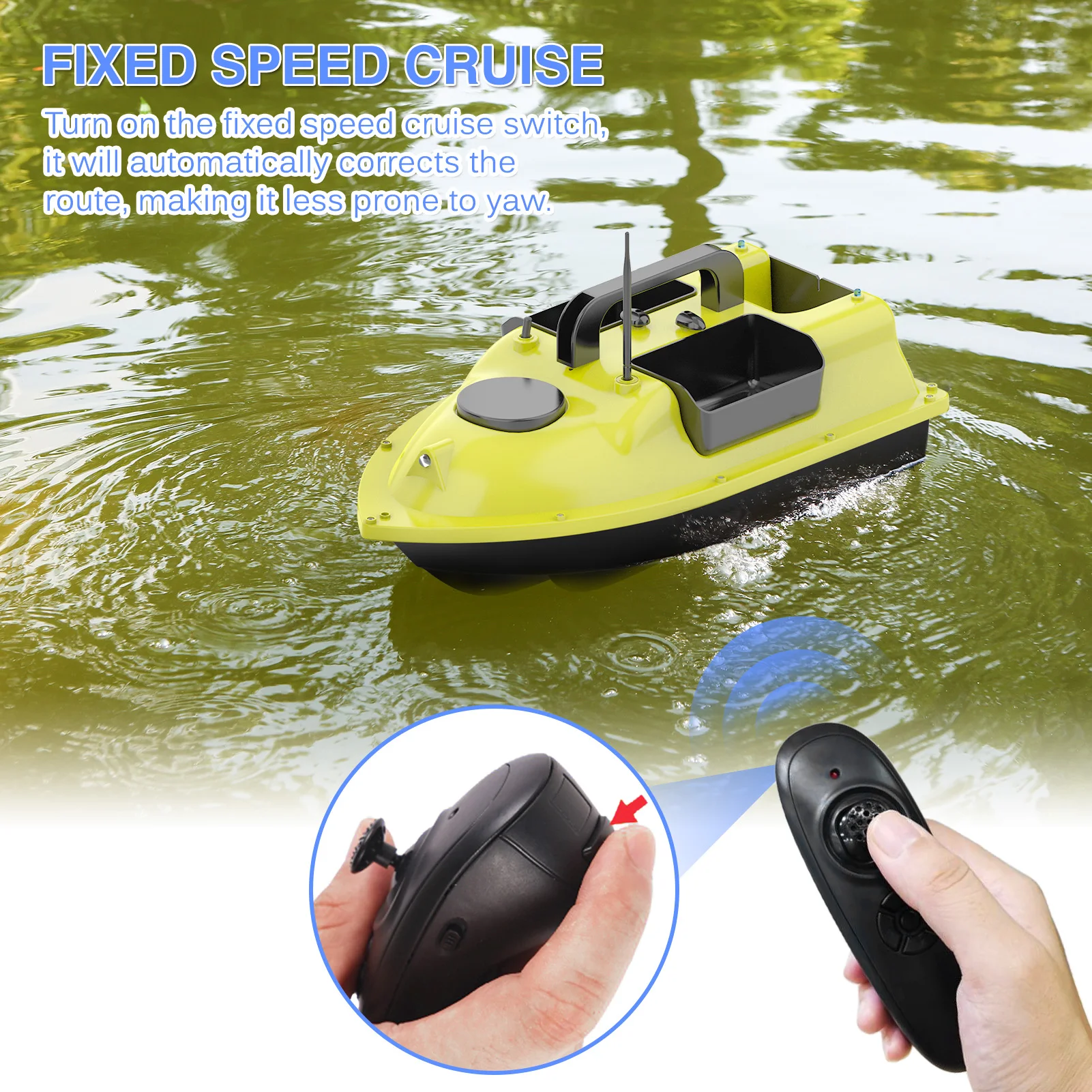 Беспроводное управление позволяет выпустить приманку далеко в озере, реке и водохранилище. 3 контейнеры для наживки могут вмещать около 4,4 фунта приманки для всех игровых рыб. Простота в эксплуатации для любителей рыбалки или начинающих, а также для детей. Особенности:3 контейнера для наживки с несущей способностью около 4 фунтов для большего количества наживок. (Примечание: контейнер для наживки без функции самостоятельного возврата, вы должны вытянуть его назад руками после освобождения.)Беспроводное управление и Круизный переключатель с фиксированной скоростью позволяют выпустить приманку далеко. (Дистанционный диапазон: 500 м/540 ярдов)Двойные двигатели и двойные пропеллеры делают лодку легкой в спорте и кролировании.1 передние белые огни и 2 задние синие ночные огни для ночной рыбалки и кормления.Обтекаемый корпус уменьшает Водонепроницаемость и устойчивость к волнам 5 уровней.Лодка приманки питается от buit-in 7,4 v/5200mAh аккумуляторная батарея (входит в комплект).Пульт дистанционного управления питается от двух батарей AAA (в комплекте).V-образная конструкция крючка, более эффективно носить крючки и приманки одновременно. Спецификация:Материал: АБС + металлБатарея лодки-приманки: 1*7,4 v 5200 mAh 18650 аккумуляторная батарея (входит в комплект)Удаленная Батарея: 2 * AAA батареи (в комплекте)Время зарядки: около 10 часовПриманка подшипник Ёмкость: кг/2 кг/4,4 фунтов лёгкий нейлоновый тросДистанционный диапазон: 500 м/540 ярдовРазмер приманки: 500*270*230 мм/19,7*10,6*9,1 дюймовВес лодки-приманки: прибл. 1,9 кг/4,2 фунтов лёгкий нейлоновый тросВес посылка: прибл. 2,65 кг/5,8 фунтов лёгкий нейлоновый трос Посылка:1 * Лодка-Приманка (перезаряжаемая батарея)1 * пульт дистанционного управления (с 2 батареями AAA)1 * антенна1 * Руководство пользователя1 * зарядное устройство2 * Запасные пропеллеры