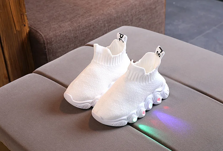 Кроссовки-носки детские сетчатые, дышащие Нескользящие, со светодио...