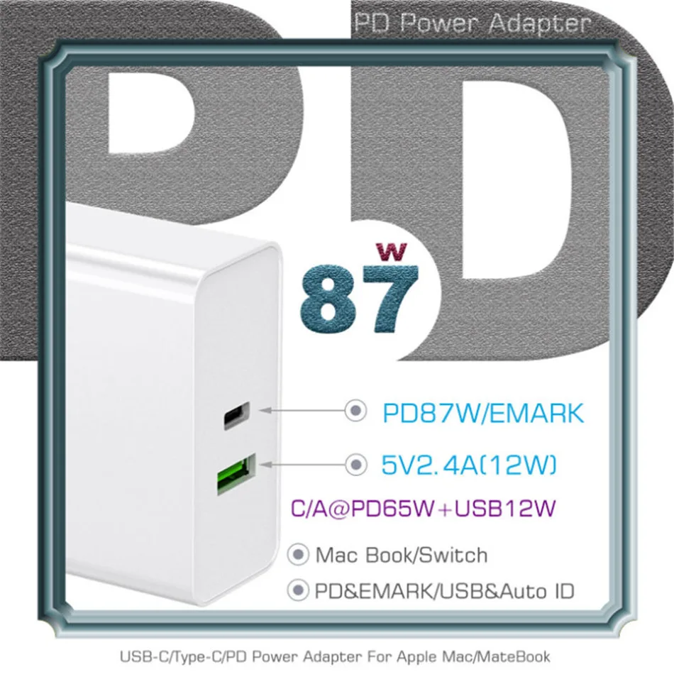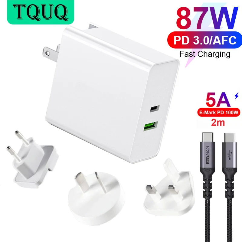 Сетевое зарядное устройство TQUQ, USB C, 87 Вт, зарядное устройство PD 3,0 со складной вилкой, для MacBook ProAir, iPad AirPro, iPhone 1112XR, Pixel 3 X