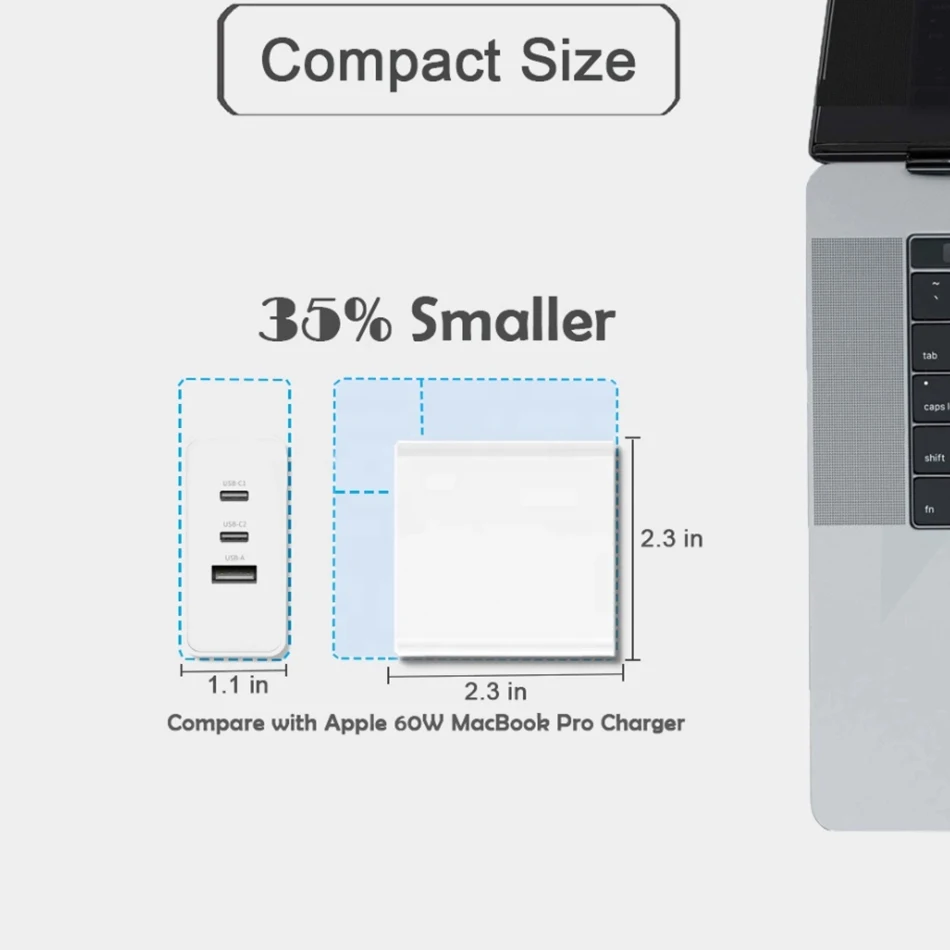 3 порта 65 Вт Зарядное устройство :( Поддержка порта PPS FCP AFCP SCP PD 3,0 QC 4,0 3,0 Быстрая зарядка) USB-C1 выход: (PPS 3,3-11 в/3A) 5 В/3A, 9 В/3A, 12 В/3A, 15 в/3A, 20 В/3.25A (макс.: 65 Вт) USB-C2 выход: (PPS 3,3-11 В/2.7A) 5 В/3A, 9 В/3A, 12 В/2.5A, 15 в/2A, 20 В/1.5A (макс.: 30 Вт) USB-A выход: 4,5 в/5A, 5 В/4.5A, 9 В/3A, 12 В/2.5A, 20 В/1.5A (макс.: 30 Вт) USB-C1 + USB-C2: 45 Вт + 18 Вт (63 Вт) USB-C1 + USB-A: 45 Вт + 18 Вт (63 Вт) USB-C2 + USB-A: 5 В/3 А (15 Вт) USB-C1 +(USB-C2 + USB-A): 45 Вт + 15 Вт (60 Вт)