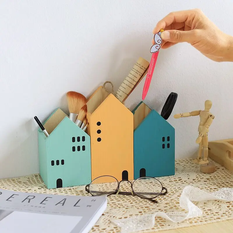 Милые Nordic дом Форма деревянная настольная подставка для ручек органайзер для хранения косметических принадлежностей, для ювелирных украшений, подставка Творческий школьные канцелярские принадлежности