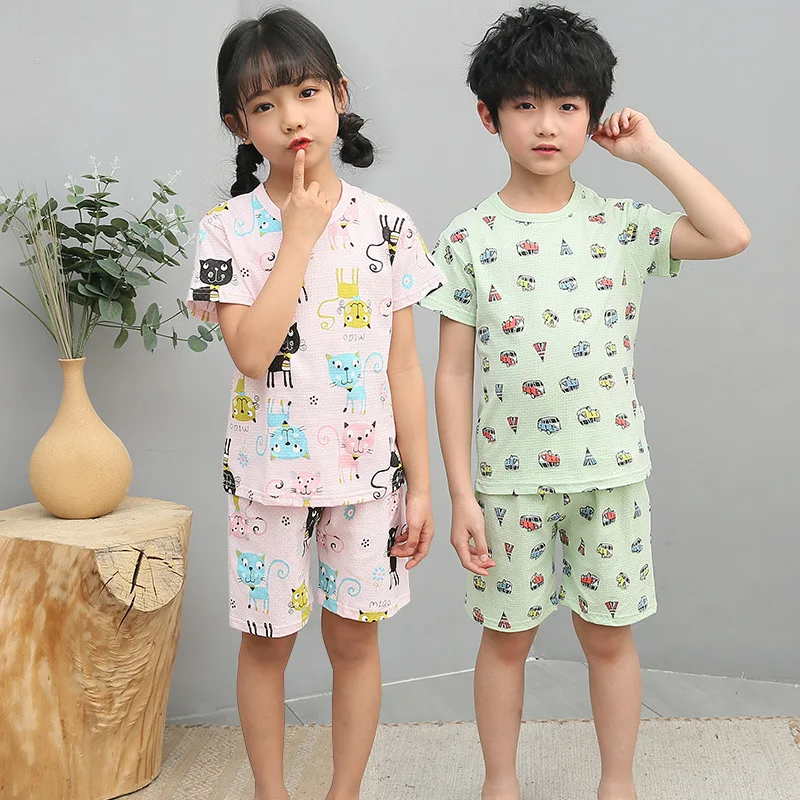 Пижама детская хлопковая с коротким рукавом, для мальчиков и девочек