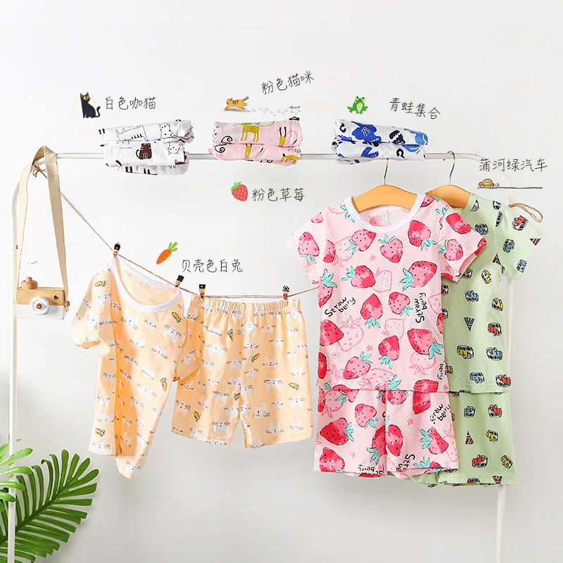 Летние Обувь с дышащей сеткой; Одежда для маленьких девочек; Комплект одежды для маленьких мальчиков с шортами для мальчиков, Детская Пижама, домашние наборы для детей, одежда для сна с героями мультфильмов спортивный костюм