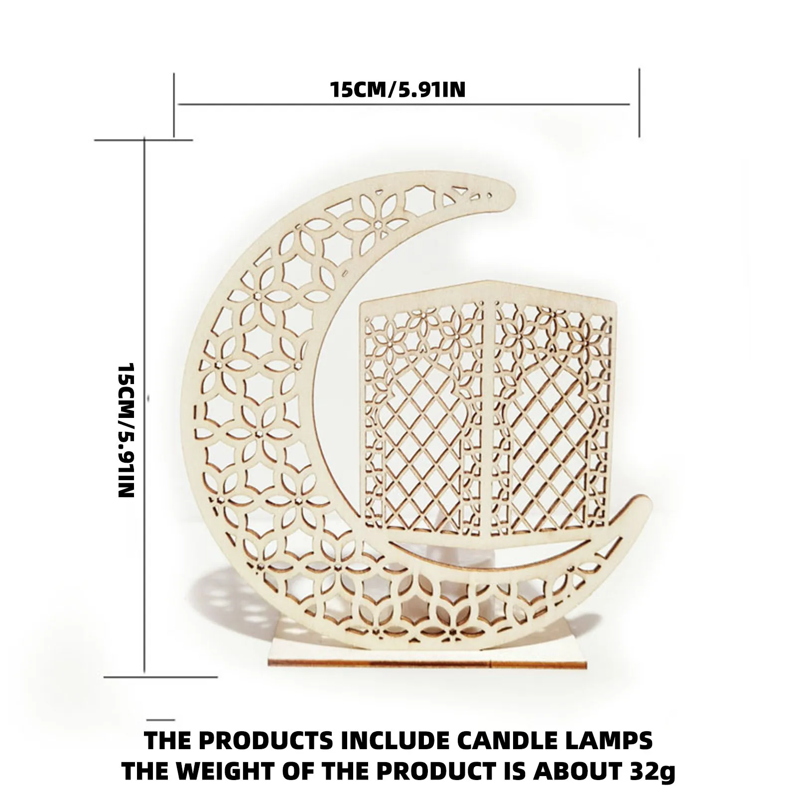 4. Элегантный дизайн: дизайн деревянных украшений имеет выдолбленный Мусульманский Стиль. Это традиционный фестиваль Eid al Fitr. Привлекательный внешний вид, может быть хорошим украшением дома и фестиваля.