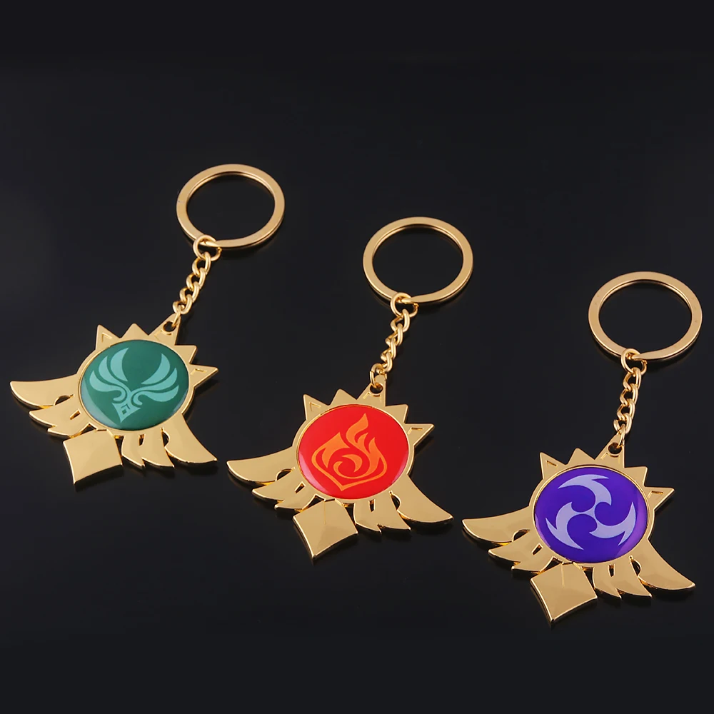 Брелок для ключей Genshin Impact, металлические ювелирные изделия, 7 элементов, косплей, оружие, глаз Божий, аксессуары, детские игрушки, подарки