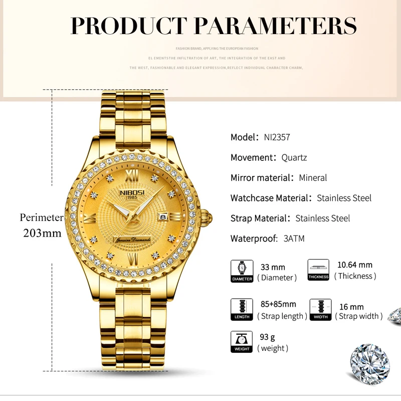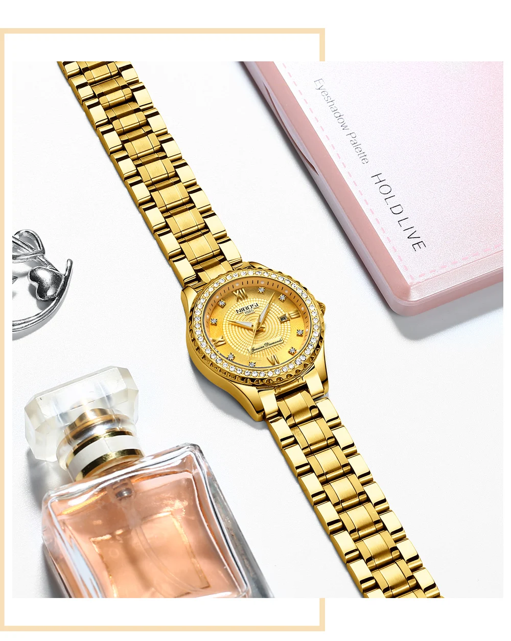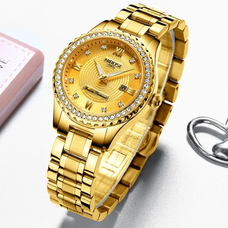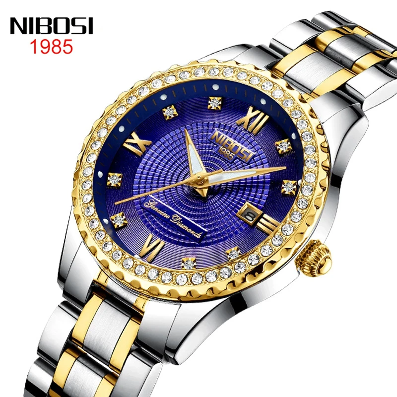 Часы наручные NIBOSI женские кварцевые, роскошные брендовые водонепроницаемые с браслетом из нержавеющей стали