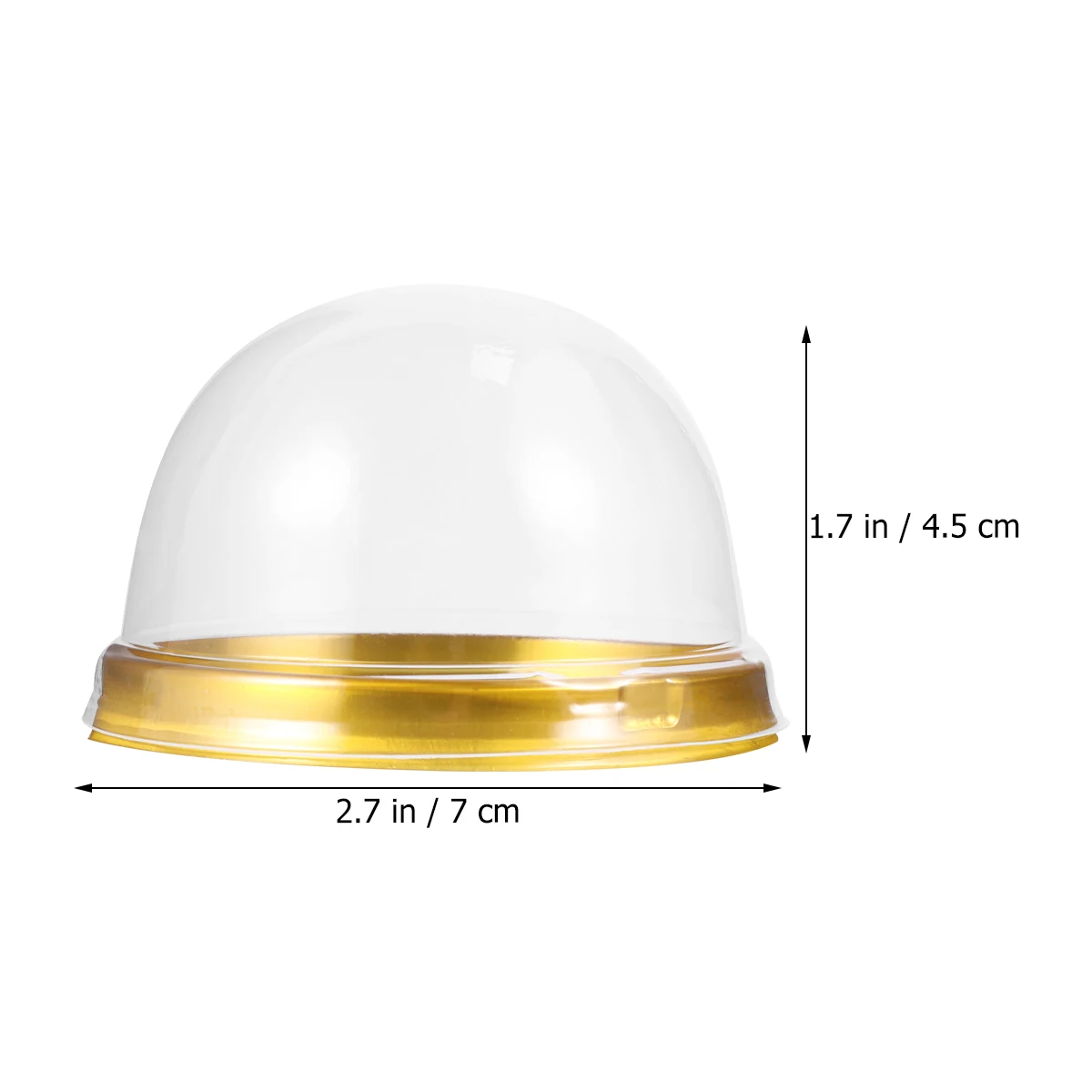 ОписаниеЭтот купол предназначен для выпечки. Идеально подходит для подачи пирожных, мини-коктейлей, печенья, хлеба, ломтиков крема, маффинов, печенья. Отлично подходит как десертные коробки для особых случаев, таких как свадьбы, детское Крещение и дни рождения.Особенности-Цвет: золотистый.-Материал: ПЭТ.-Размеры: около 7 см x 7 см x 4,5 см.-Изготовлен из высококачественного пищевого ПЭТ материала, экологически чистый и безопасный для длительного использования.-Красивый внешний вид, водонепроницаемый, чтобы предотвратить деформацию торта, легко носить с собой или отправлять.-Покрытие прозрачное, яркое, прозрачное, гигиеничное и точно сочетается с базой, которая хорошо запечатывает и играет хорошую защитную роль.-Небольшой контейнер для торта использует просто очистить дизайн, отличная прозрачность и сильный светильник с высоким коэффициентом пропускания, вкусный торт подкладка изготовлена из меха черно четко видимый, отличная идея для подарка.-Подходит для небольших тортов, лунных тортов, кексов, сыра, выпечки, десертов, выпечки, хлеба, печенья и других небольших продуктов.