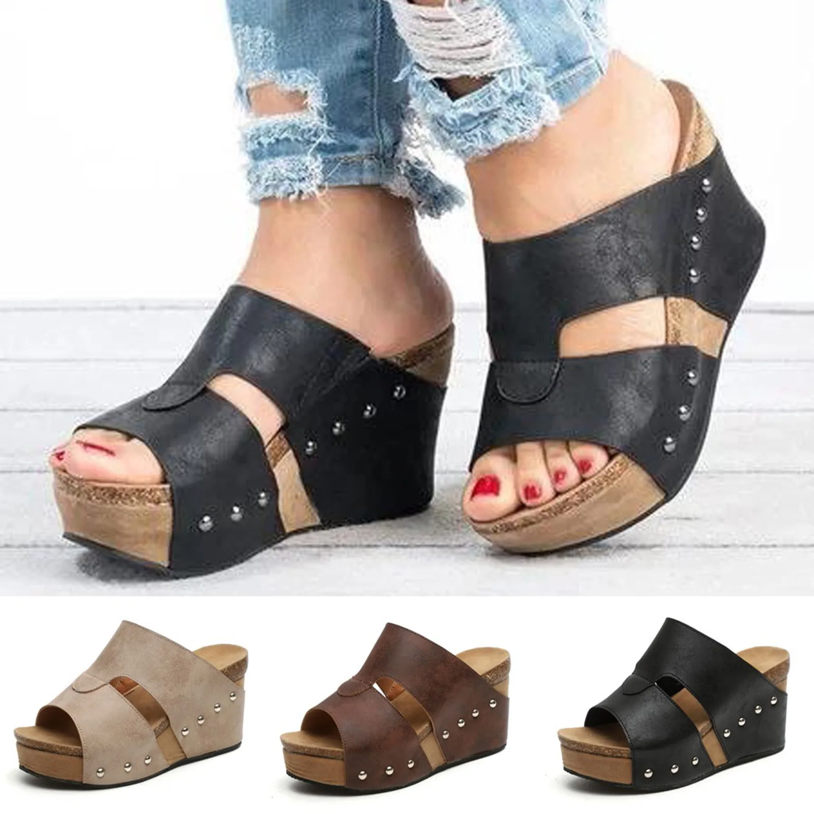 SAGACE Женская размера плюс; Сандалии в богемном стиле повседневные туфли на платформе с открытым носом на толстой подошве; Тапочки; Женская летняя обувь на плоской подошве и высоком каблуке; Босоножки на платформе; Пляжная обувь