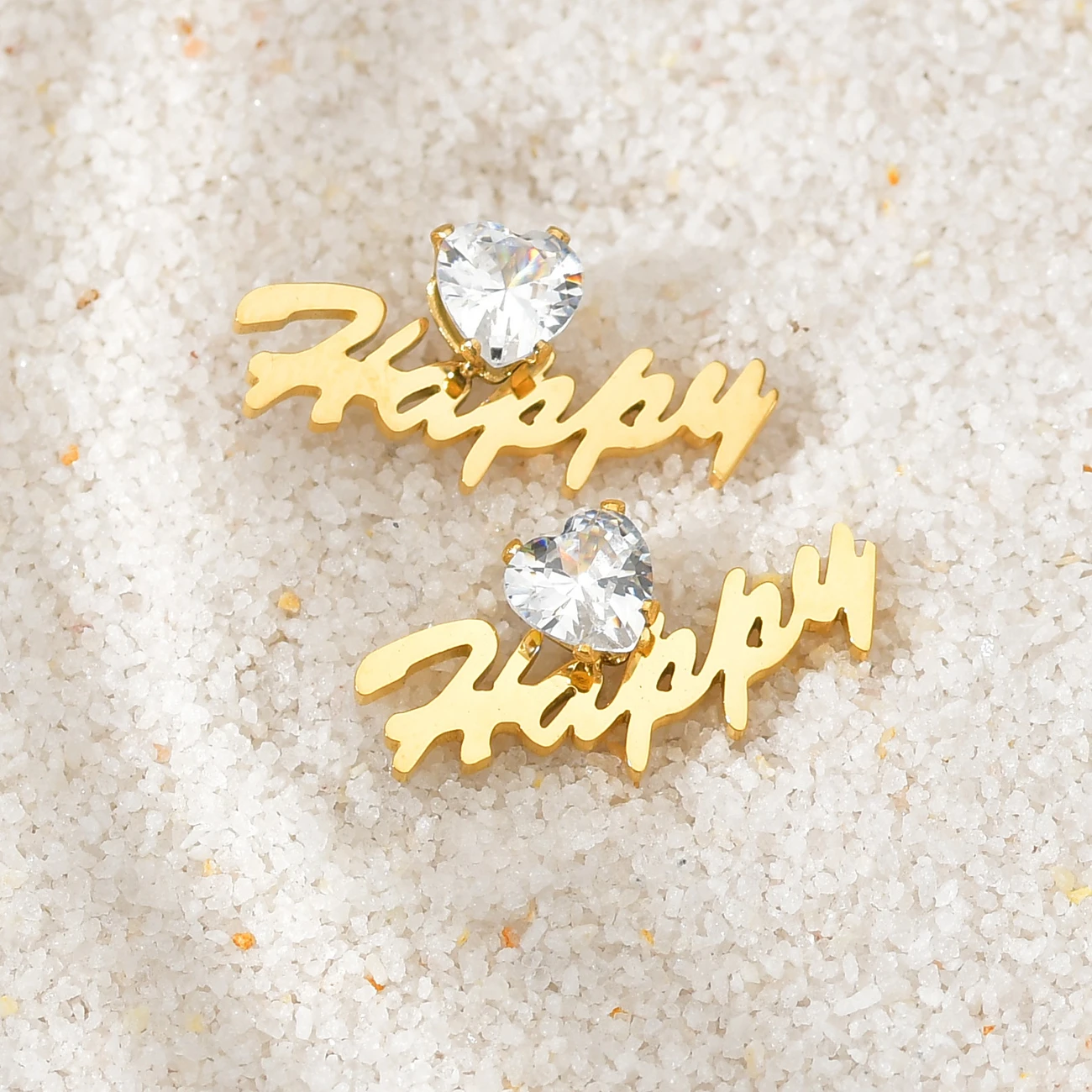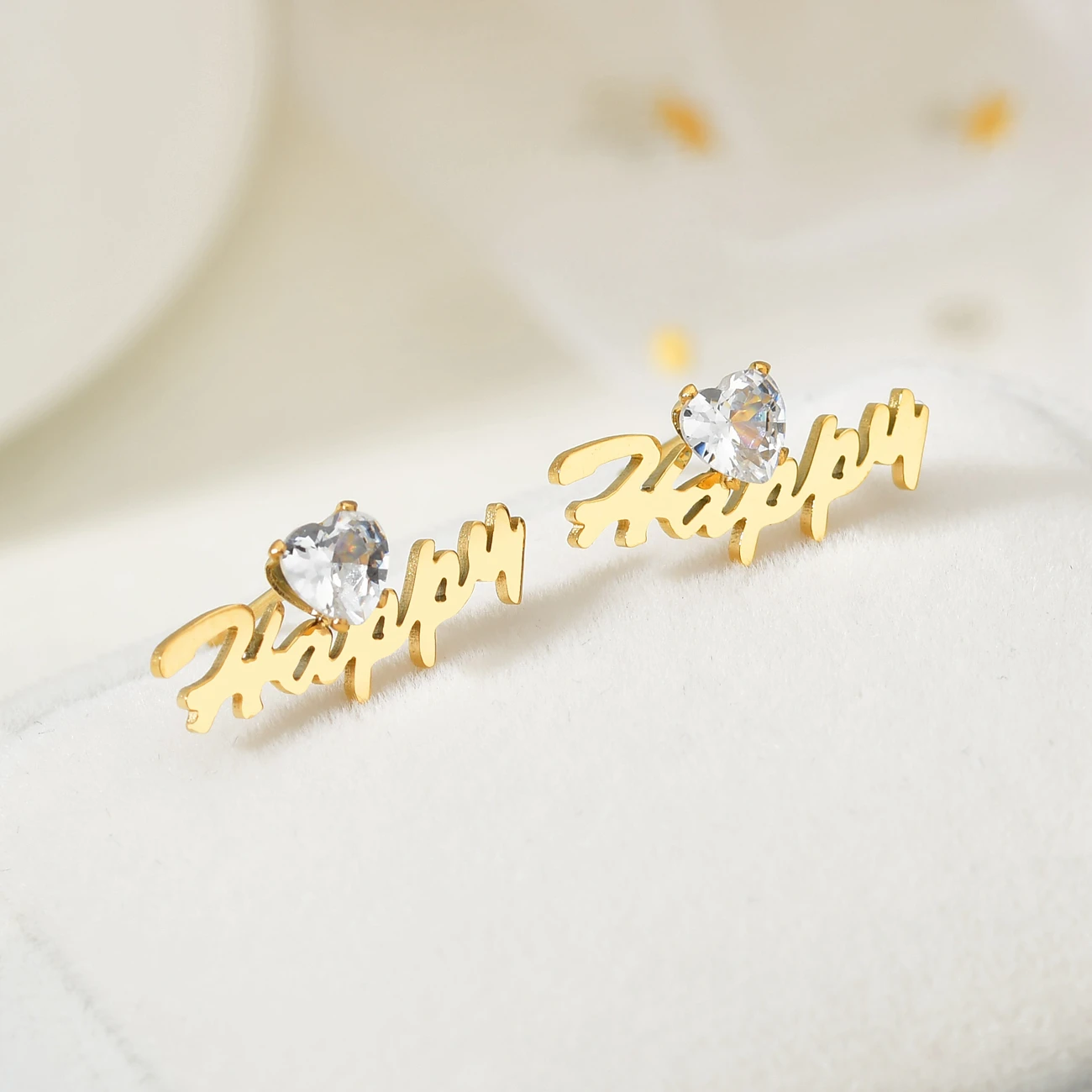 FeatureName Letter Stud Earrings,nameplate stud earring,earring with stone