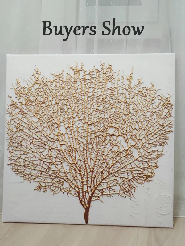 Абстрактная Картина на холсте с золотыми листьями и цветами, соврем...