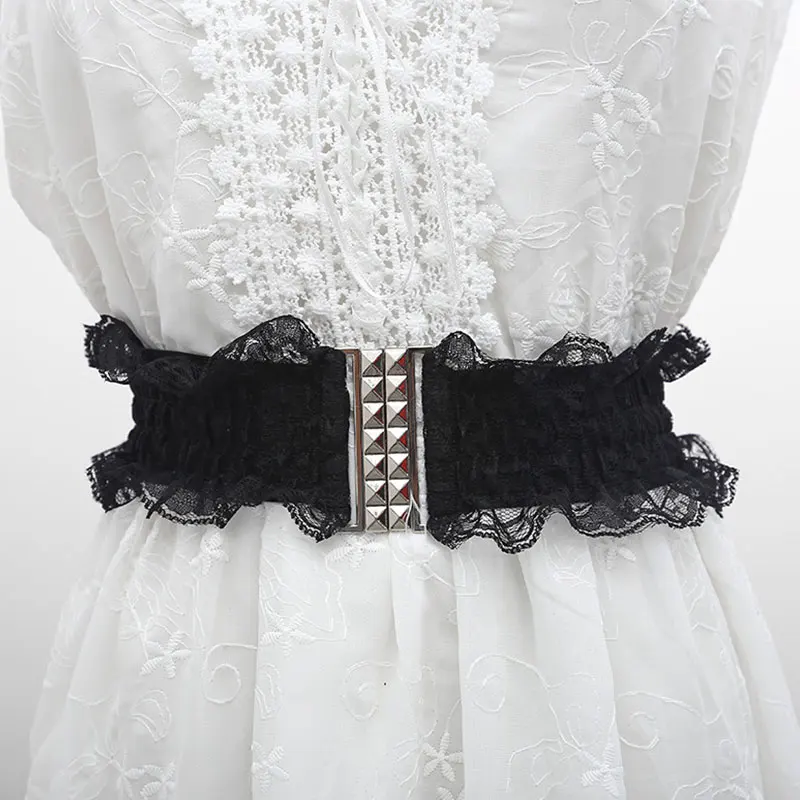 Ретро Широкий кружевной пояс корсет пояс черно-белое растягивающееся платье пояс сплав Пряжка женский декоративный пояс женский пояс
