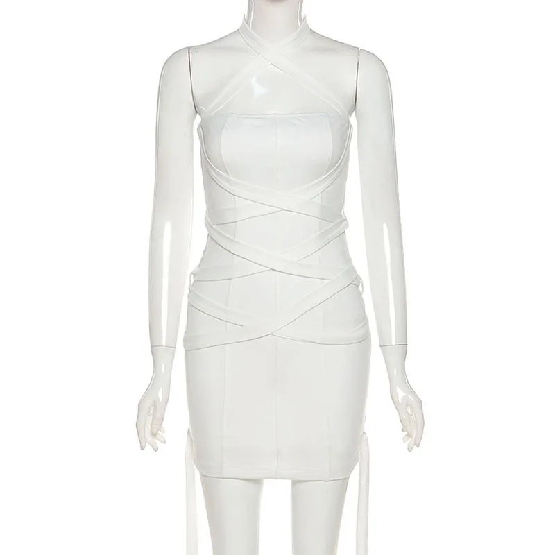 Женская пикантная обувь с квадратной горловиной одноцветное Цвет повязки скинни с лямкой на шее без рукавов с открытой спиной Мини платье-футляр Элегантный шик платье с высокой талией