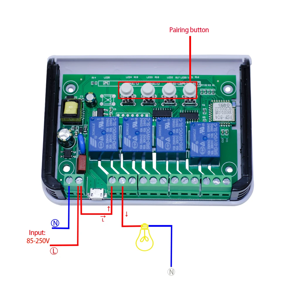 Модуль интеллектуального приемника посылка [4ch DC7-32V WIFI RF] и [4ch AC85-250 WIFI RF] имеет функцию RF, но без дистанционного управления RF. Если вам нужен пульт дистанционного управления RF, вы можете купить [пульт дистанционного управления RF]
