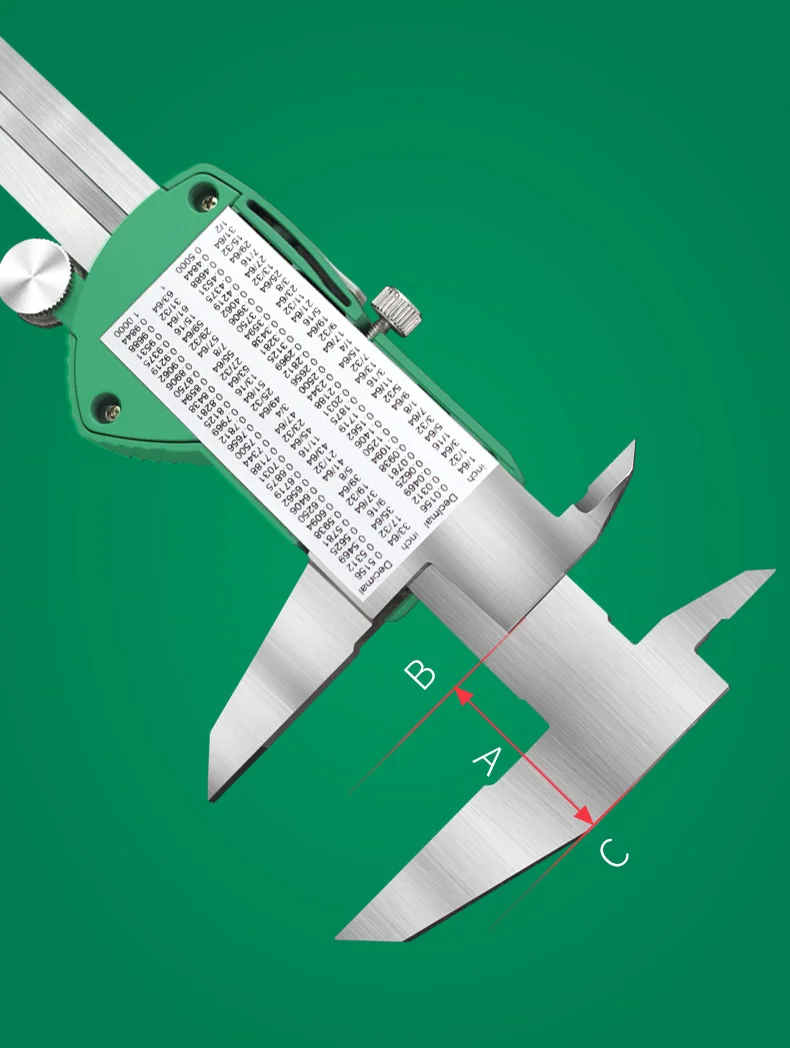 Задняя часть штангенциркуля для измерения шаговA: высотаB: конец шагаC: начало шага