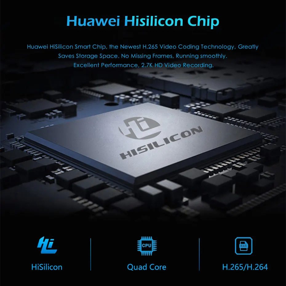Чип Hisilicon Huawei С помощью чипа Huawei HiSilicon 3559v200 операция является более гладкой, скорость отклика меню более чувствительна, съемка не сбрасывает кадры, система более стабильна, и срок службы является долгим.