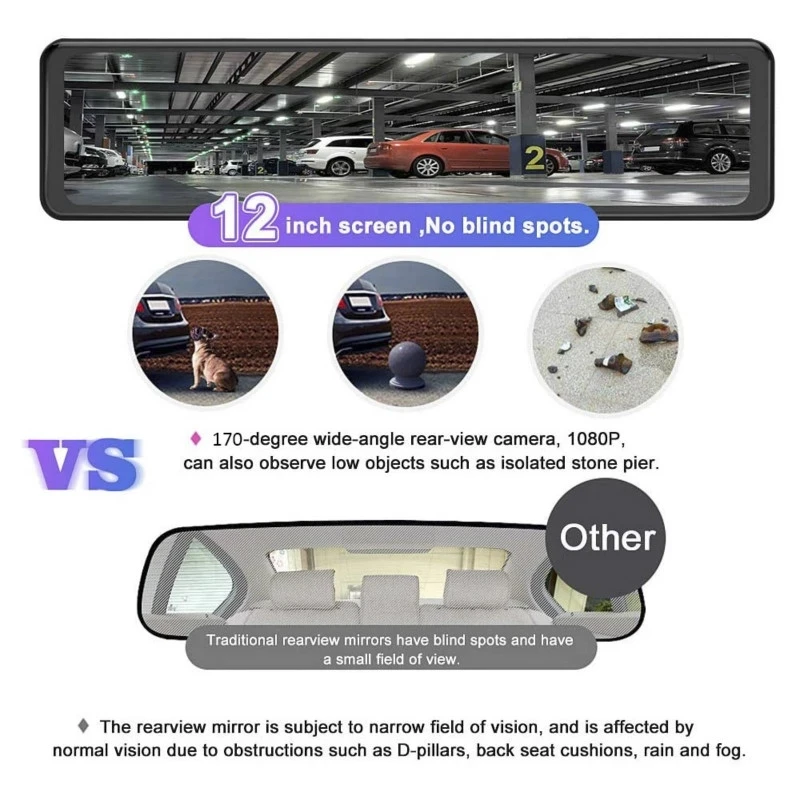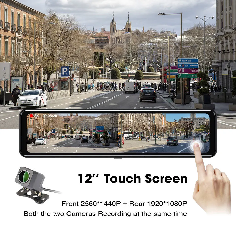 Полноразмерный экран 12 дюймов 12-дюймовый Full View сенсорный Экран обеспечивает кристально изображения без каких-либо задержек. Очень четкий и плавный показ изображения, как поток, протекающий на превосходном WDR и автоматическом регулировании яркости потокового зеркала.