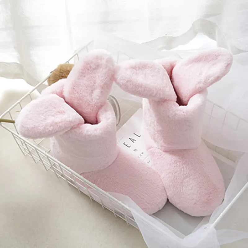 Зимние женские меховые сапоги для дома, милая розовая Резиновая женская обувь до середины икры на меху, сланцы, плюшевые теплые женские ботильоны без шнуровки