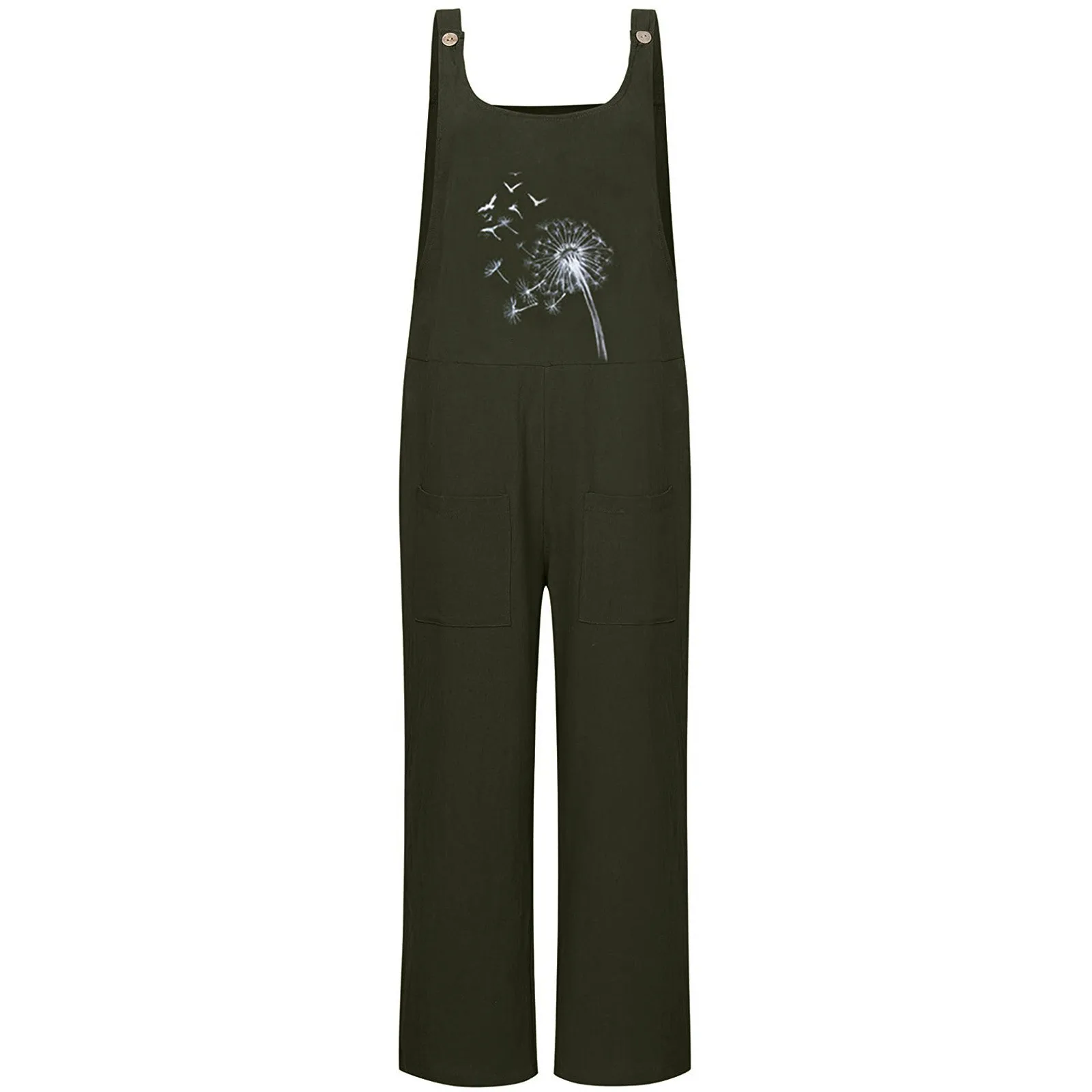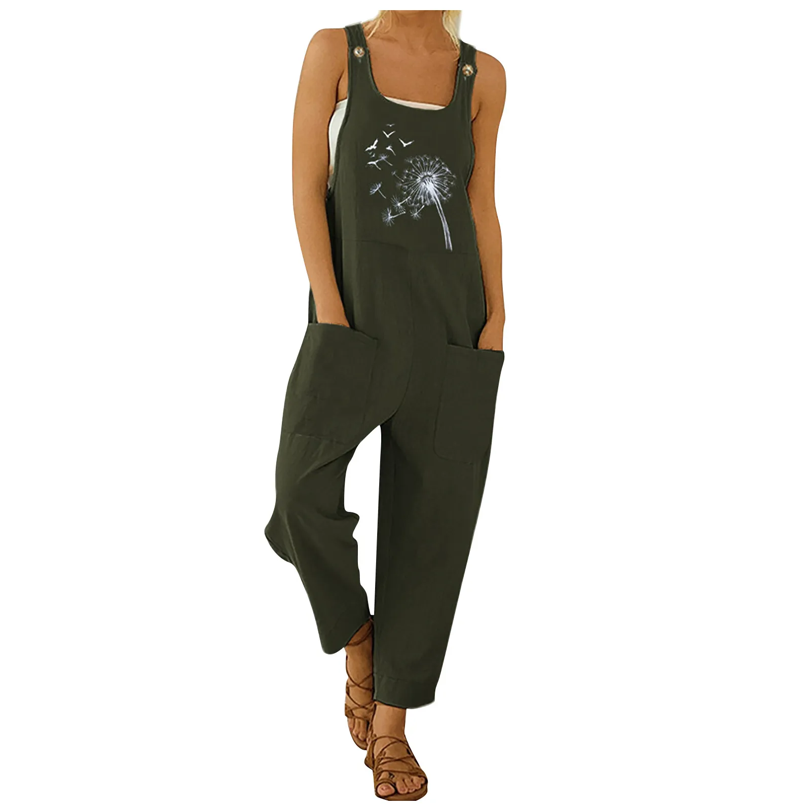 2021 повседневное женское платье с принтом Комбинезон в винтажном стиле; На бретелях с открытой спиной Комбинезоны из хлопка и льна размера плюс, свободная, без рукавов, ромперы на пуговицах d7