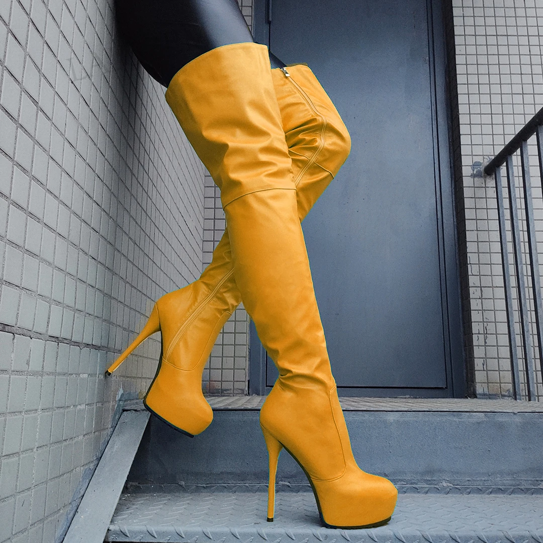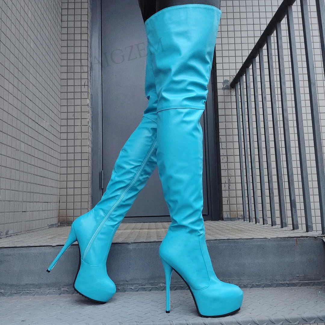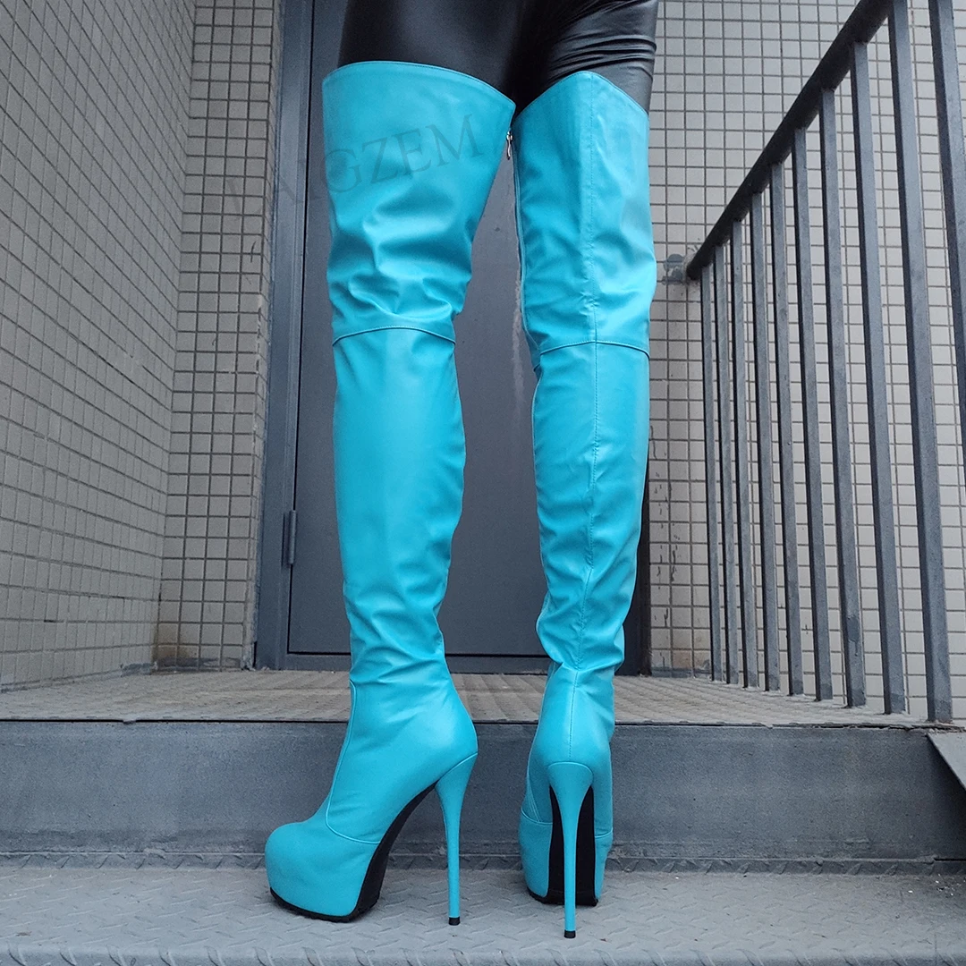 Сапоги женские до бедра, на платформе, на шпильке, с застежкой-молн...