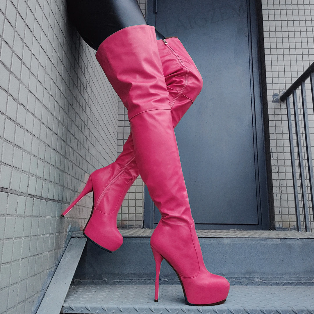 LAIGZEM/очень женские сапоги на платформе с высоким голенищем; Сапоги на молнии; Обувь на высоком каблуке-шпильке; Женская обувь ручной работы; Большие размеры 44, 48, 52