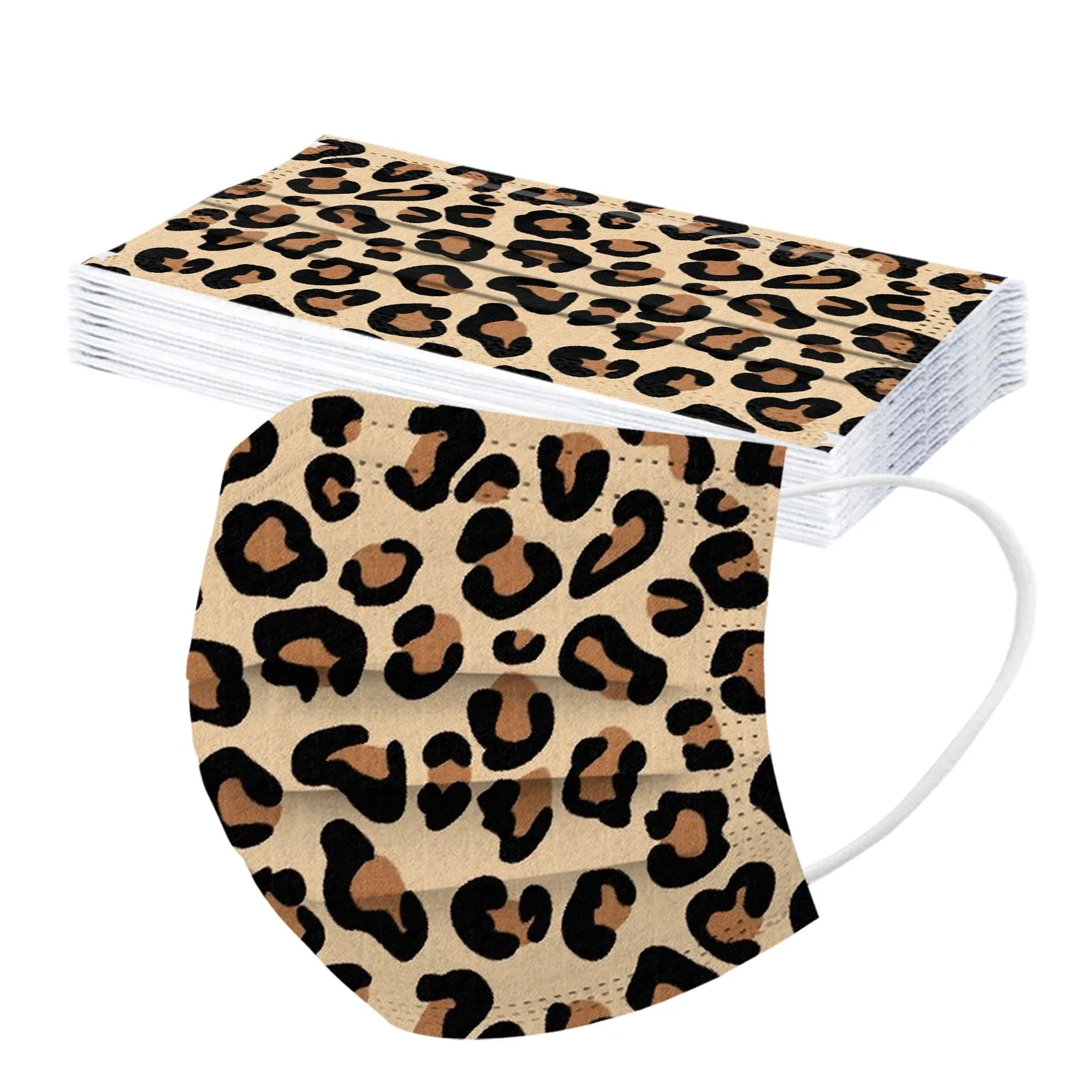 Маска одноразовая цветная с леопардовым принтом, дышащая, с петлями для ушей для взрослых, 102030 шт.