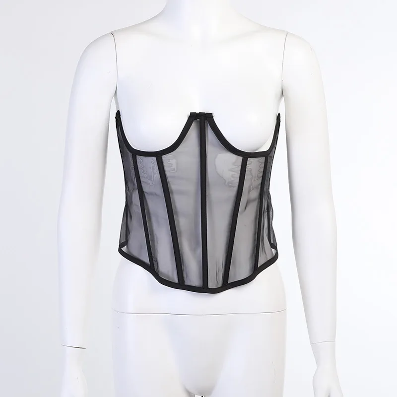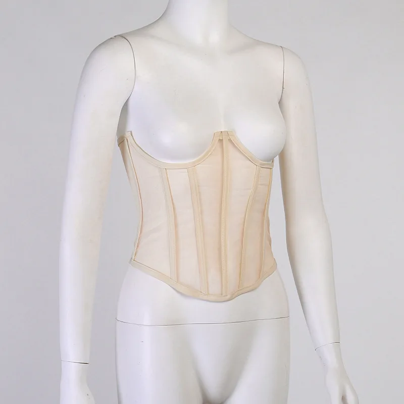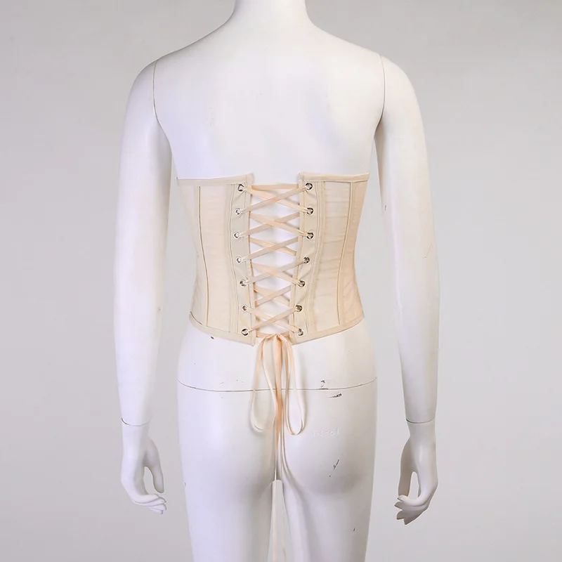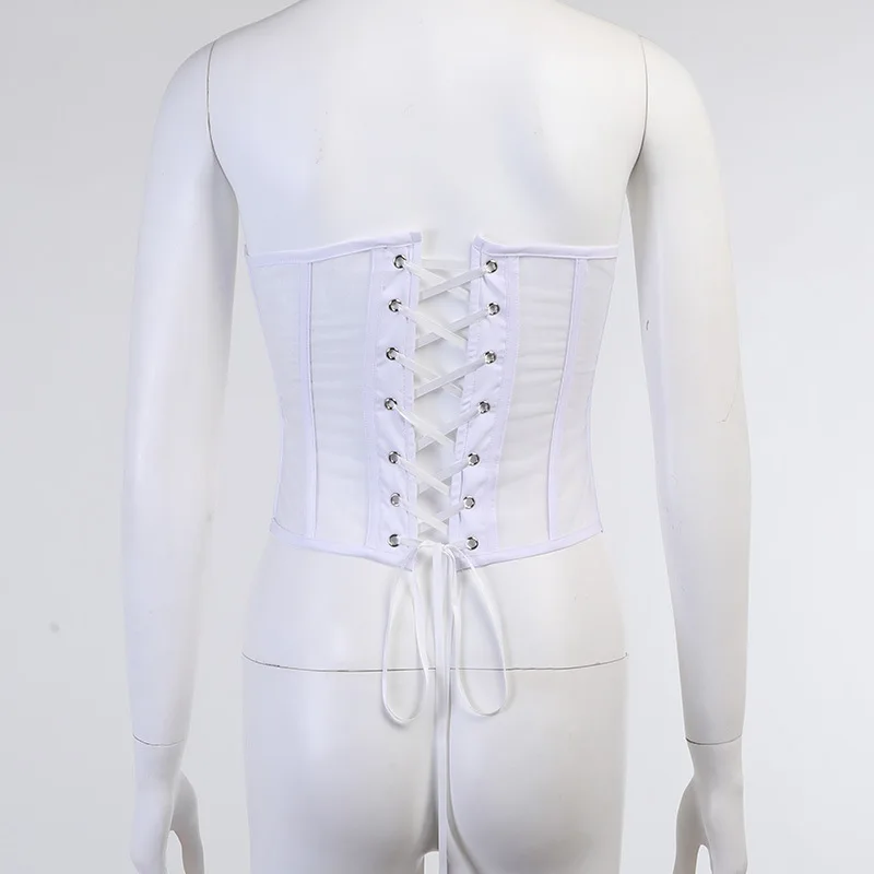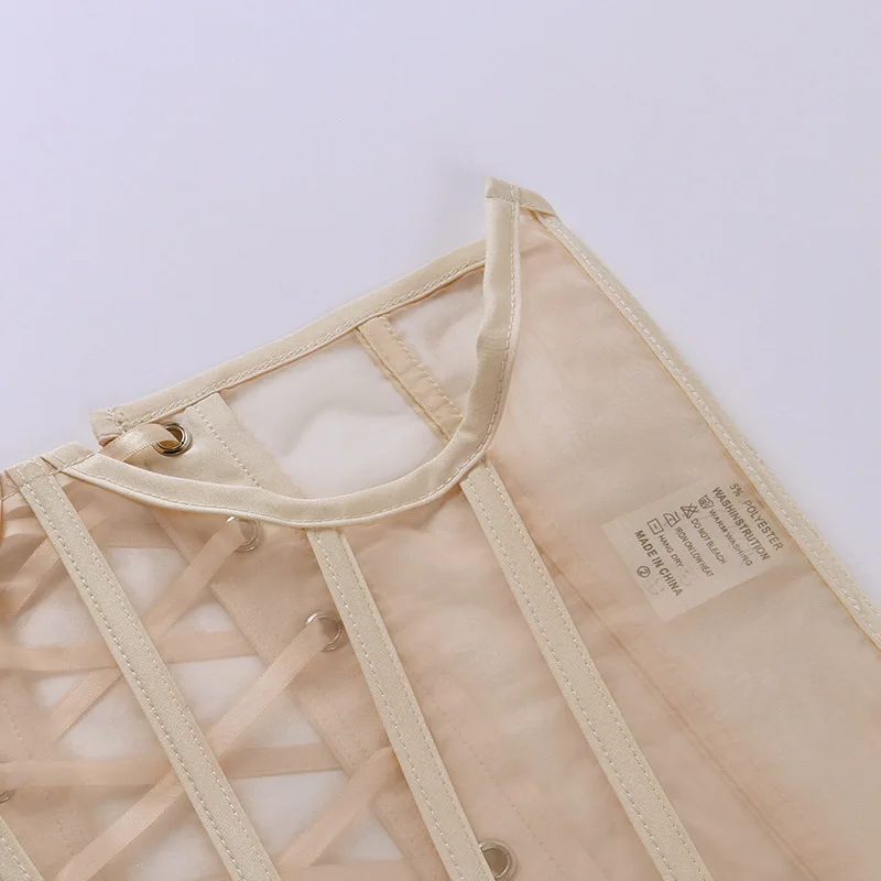 Женский винтажный прозрачный сетчатый эластичный корсет, черный, бежевый, белый, ремень готический