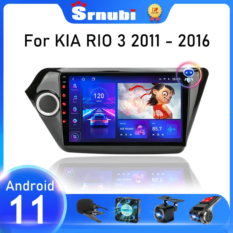 Автомагнитола Srnubi на Android 11 для Kia RIO 3 2011-2016, мультимедийный видеоплеер с навигацией, GPS, 2 Din, 4G, Wi-Fi, Carplay, стерео, DVD