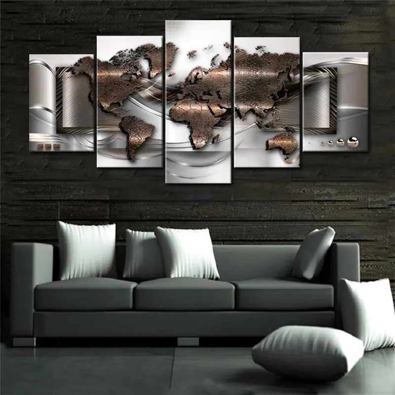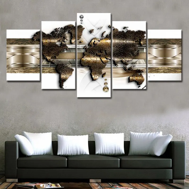 5 панелей абстрактная карта мира модульное настенное Искусство Холс...