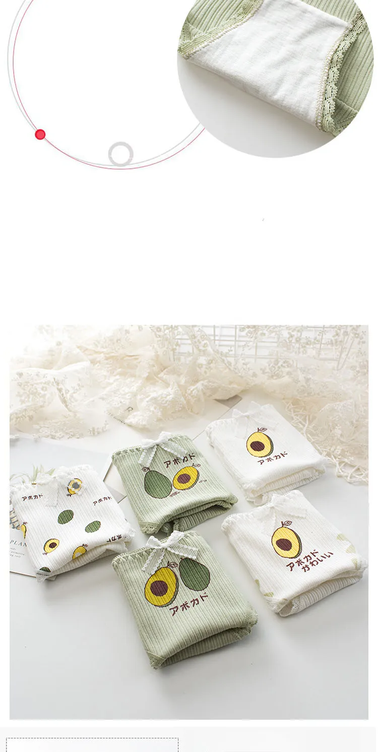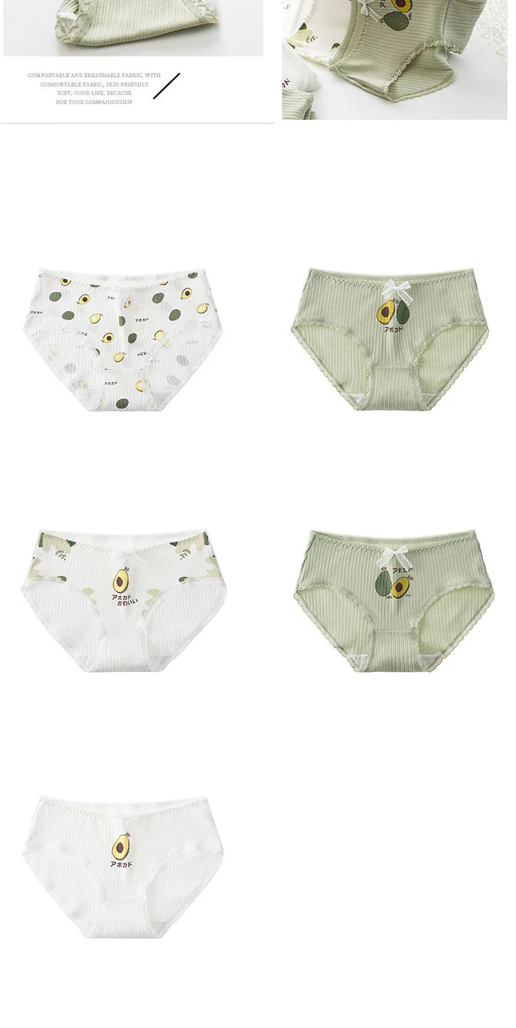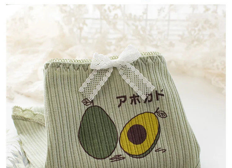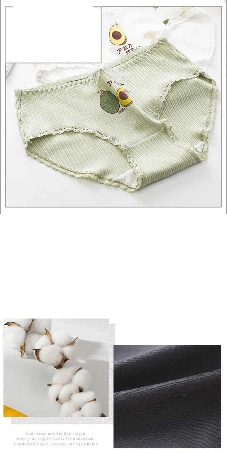 Нижнее белье женское с авокадо, милое дышащее, антибактериальный материал, однотонные Трусы со средней талией, кружевные трусики