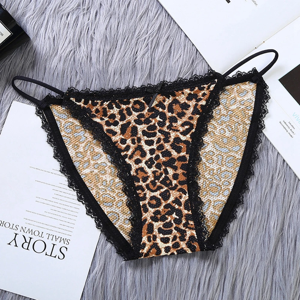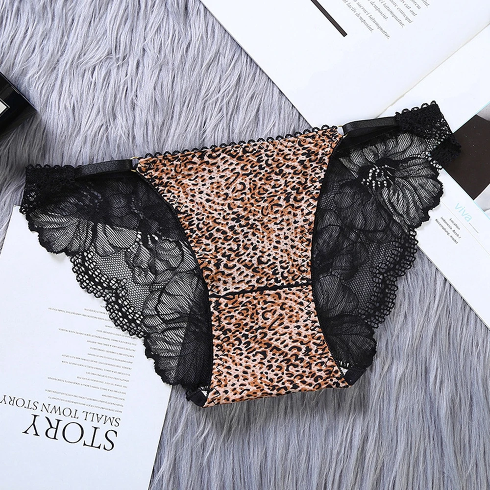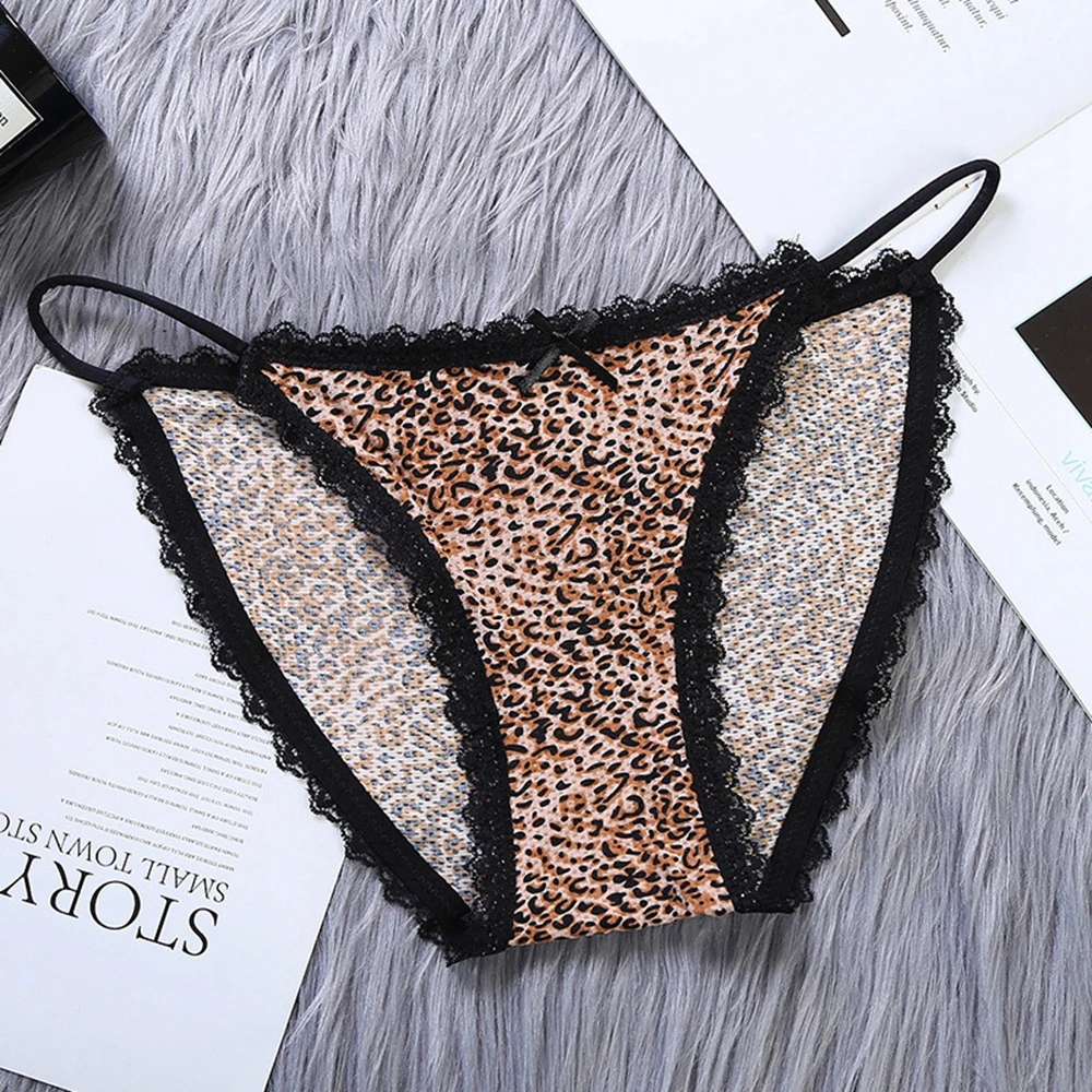 Женские кружевные трусики с леопардовым принтом, хлопковые кружевные трусики с низкой посадкой, большие размеры