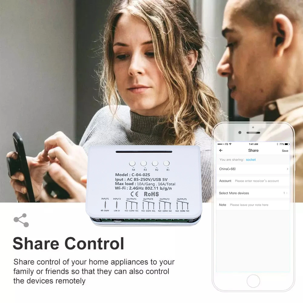 * Поддерживает сеть WiFi. Поддерживает множество смарт-переключателей Wi-Fi на одном смартфоне.* Поддержка отслеживания состояния: EWeLink своевременно предоставляется Статус устройства.* Поддерживает дистанционное включение или выключение подключенных приборов светильник электрический чайник, электрическая рисоварка, электрическая занавеска и т. Д.* Поддерживает максимум 8 включенных таймеров по расписанию/Обратный отсчет/циклический таймер для каждого устройства.* Голосовое управление: идеально Совместимо с "Amazon" Alexa, для Google Home/Nest, IFTTT