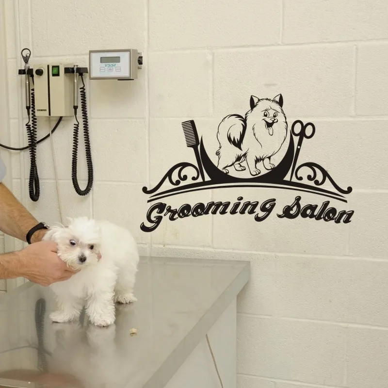 Уход за лошадьми салон стены Стикеры виниловая наклейка с принтом собаки Домашние животные магазин настенное украшение уход за домашними животными Стикеры s милого щенка искусство панно гребень ножницы