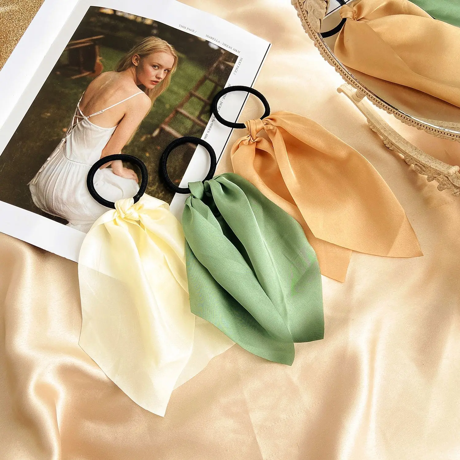 Женские резинки для волос с цветочным принтом, резинки для волос для девочек, женская шифоновая лента для конского хвоста, резинки для волос, эластичная резинка для волос
