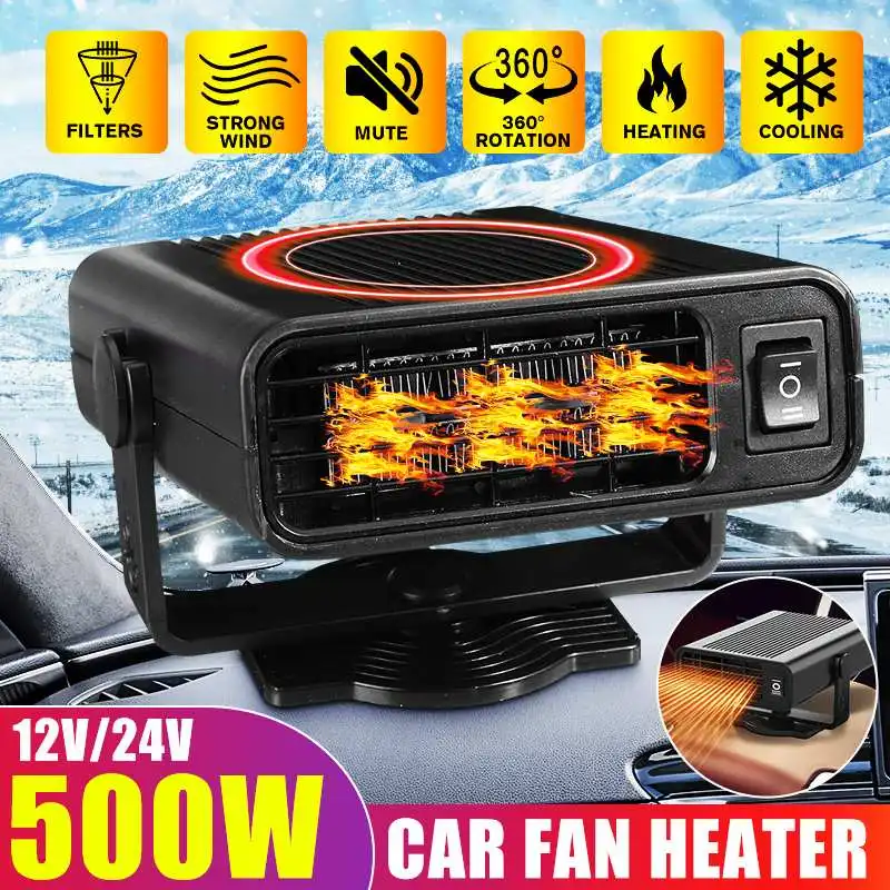 Автомобильный обогреватель, 12 В24 В, 500 Вт, портативный, регулируемый на 360 градусов электрический обогреватель, вентилятор охлаждения, очиститель воздуха, защита от запотевания ветрового стекла
