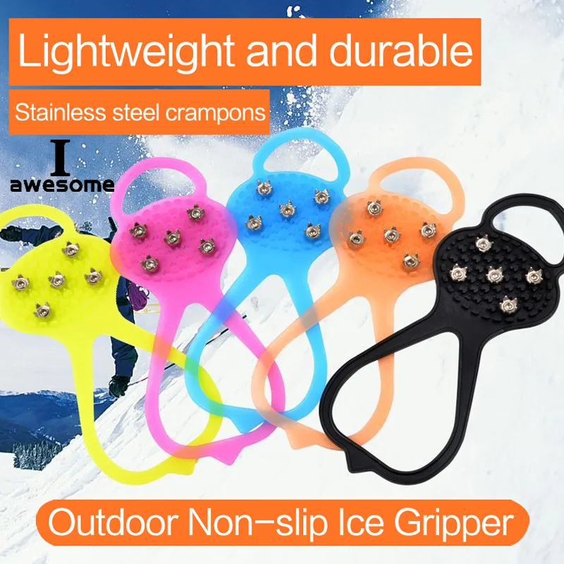 Один размер 5 зубов по ледяным скалам! Обувь Для женщин мужчин кошки шипованные зажимы для зимние шипы Нескользящие открытые Пеший Туризм