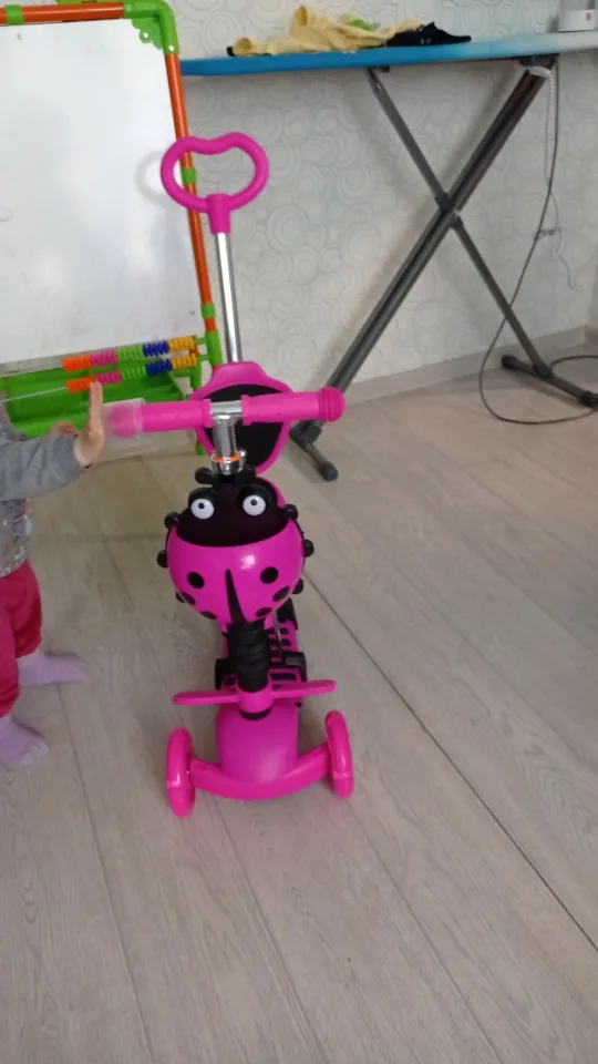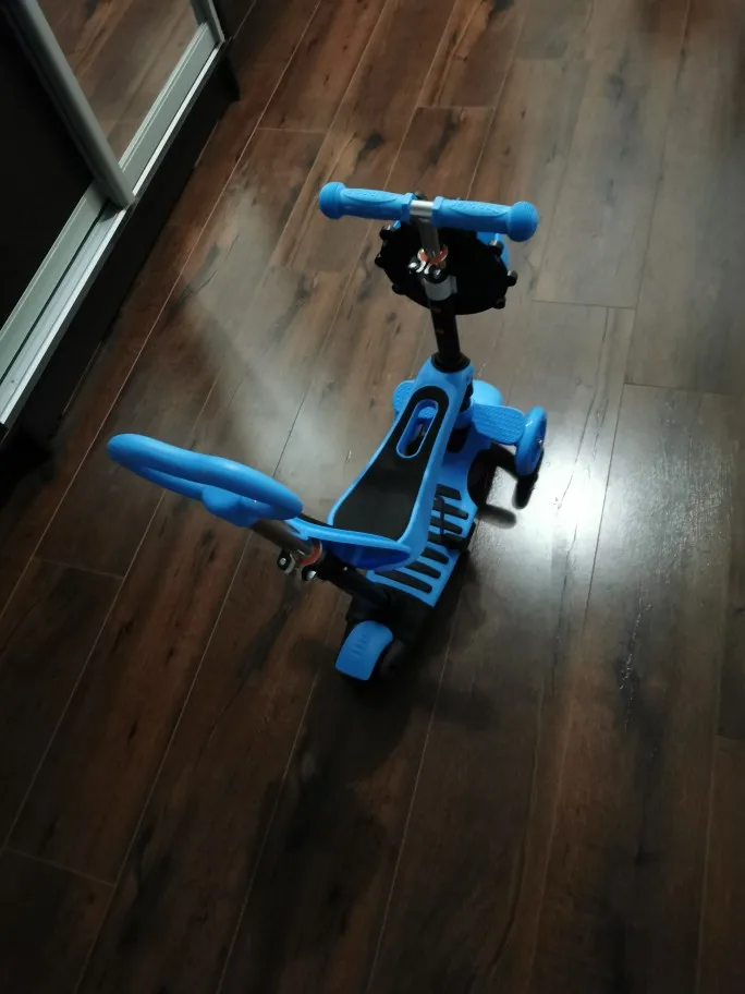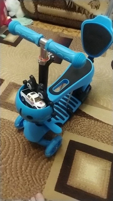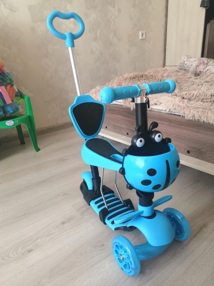 не понравилась инструкция, мало информации. пришлось два раза его пересобирать, самокат хороший. небольшие коцки на спинке,но это не критично. заказала вместе с доставкой за 2090. пришло все за две недели, это супер!