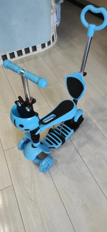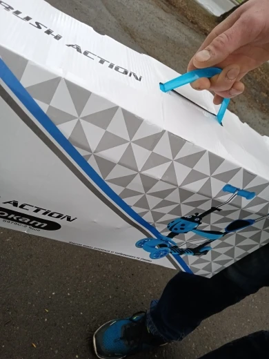 заказ пришел быстро(меньше недели до Арзамаса). самокат мощный. за ручку возить не удобно, совершенно не поворотлив, только если катать ребенка по прямой.