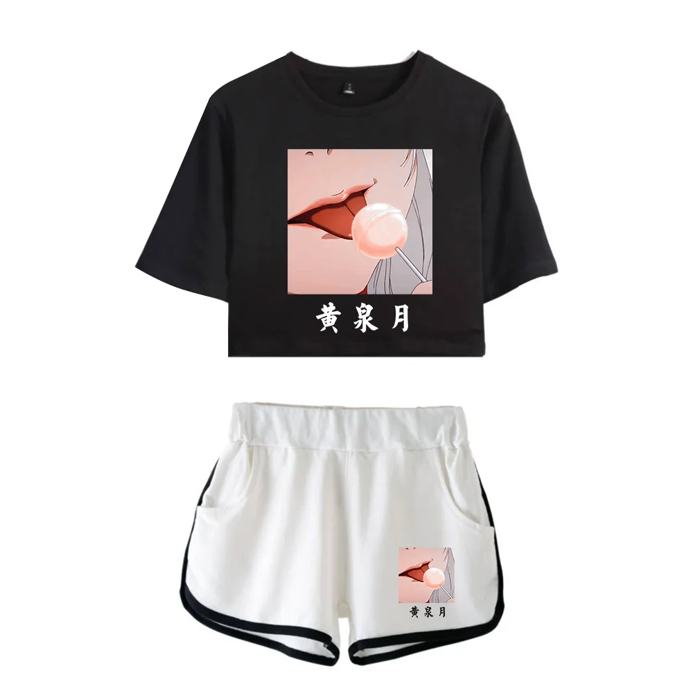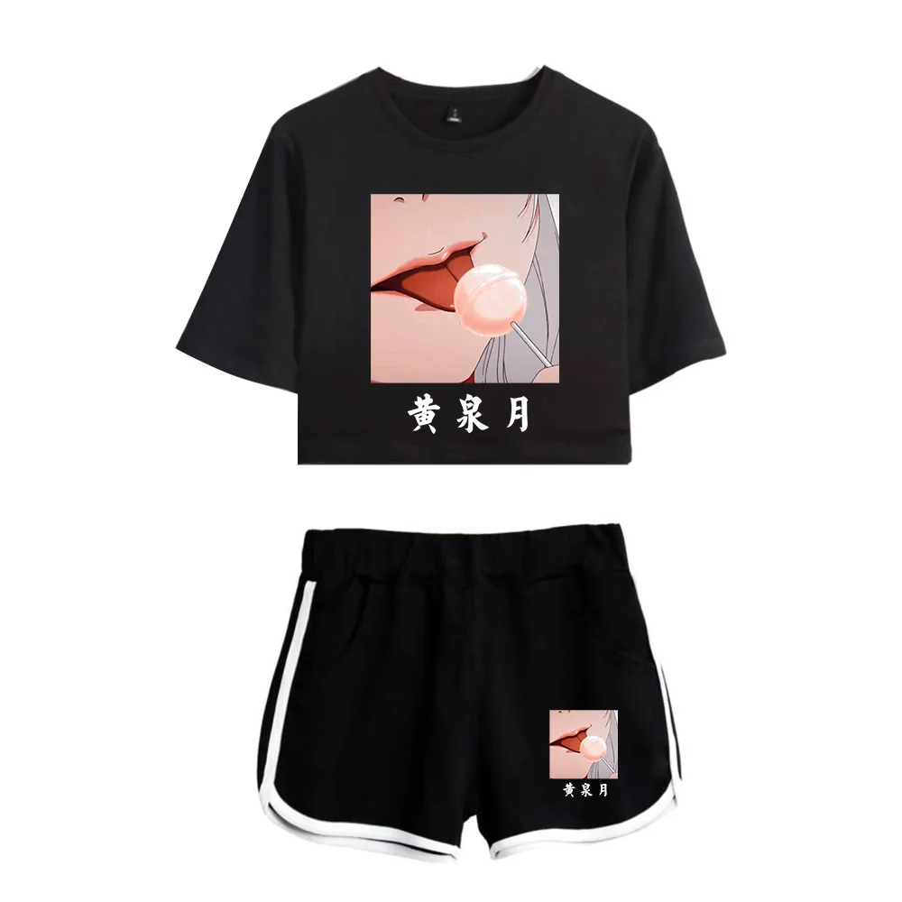 Высококачественный Женский костюм, летний женский костюм с коротким рукавом и шортами, укороченная футболка Kazukichacha, аниме Харадзюку, женские пижамы