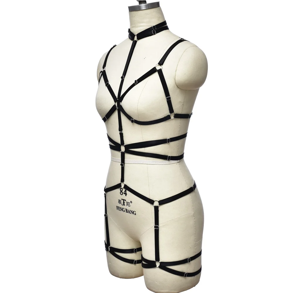 Женское открытое бондажное нижнее белье, черный ажурный бюстгальтер в стиле Харадзюку с открытой грудью и регулируемым ремнем