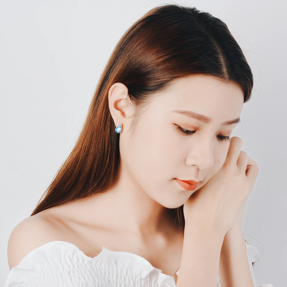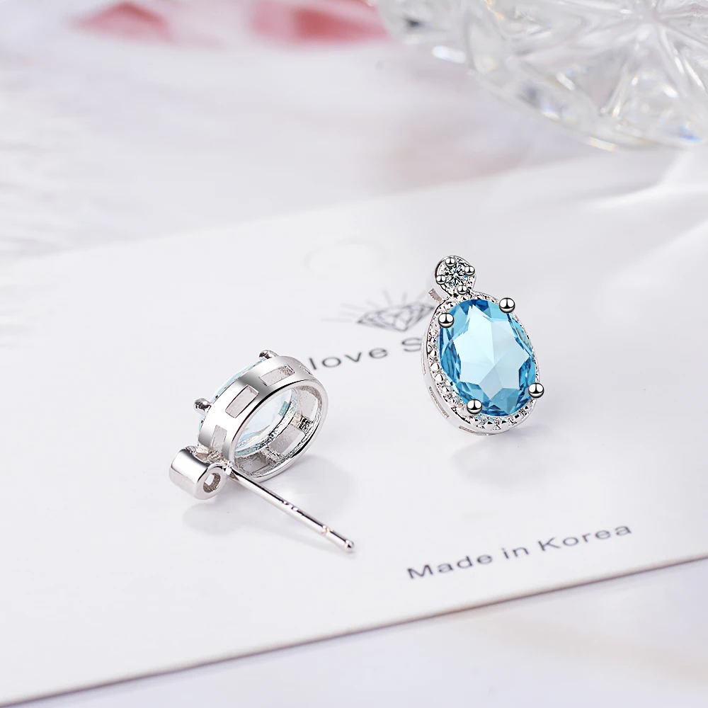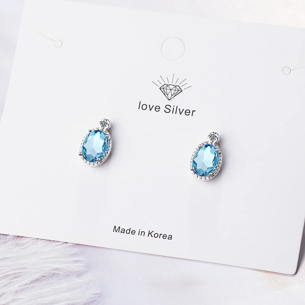 Серьги-пуссеты в Корейском стиле Простые искусственные украшенный синими кристаллами, состоящий из сережек для женщин; Свадебная обувь; Женская обувь; Обувь с подарки светильник класса люкс, модное ювелирное изделие