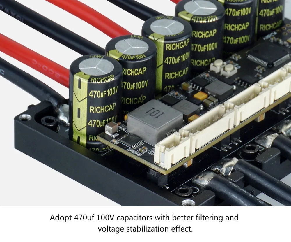 Спецификация:Напряжение: 14-75 в (безопасно для 3-16S)Непрерывный ток: 200AМаксимальный ток: 300AРазмер: 100 мм x 61 мм x 30 ммПоддерживаемые датчики: ABI, HALL, AS5047,AS5048AEPRM:150000Характеристика:Регенеративное торможениеСенсорная или бессенсорная работа + гибридный режимНастраиваемые значения оборотов в минуту, тока, напряжения и мощностиИсточник входного сигнала: PPM, аналоговый, NRF Nyko Kama NunchuckПорты связи: USB, CAN, UARTКривая дроссельной заслонки и трамбовка для всех входных источниковБесшовные 4-квадрант операцииМоторная революция, Ампер час, Ватт час подсчетаАнализ данных в реальном времени и считывание через порты связиРегулируемая Защита от:Низкое входное напряжениеВысокое входное напряжениеВысокий ток двигателяВысокий входной токВысокий регенеративный тормозной ток (отдельные ограничения для двигателя и входного сигнала)Высокая Скорость вращения (отдельные ограничения для каждого направления)Цифровые VCC и аналоговые VCC производятся различными регуляторами напряжения соответственно, чтобы сделать преобразование AD системы более точнымНапоминаем:1. Если продукт водонепроницаемый с эпоксидной смолой, гарантия продукта недействительна.2. Если вы решили сделать это, пожалуйста, будьте осторожны с коротким замыканием, вызванным гнездами с жидким клеем.
