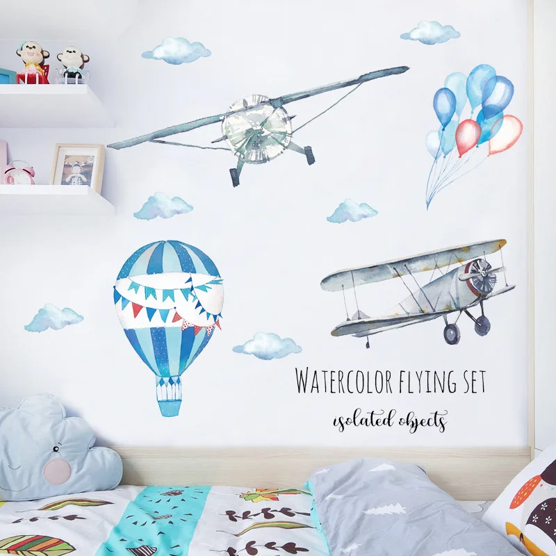 Ручная роспись акварель мультфильм самолет детская комната Спальня ...