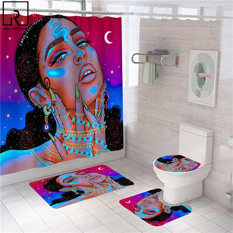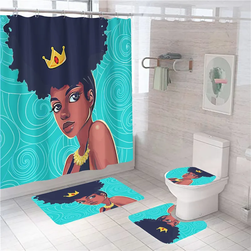 Американские женские 3D занавески для душа, водонепроницаемые черные перегородки для ванной комнаты, мягкий набор ковриков для ванной комнаты, коврик для купания, крышка для туалета