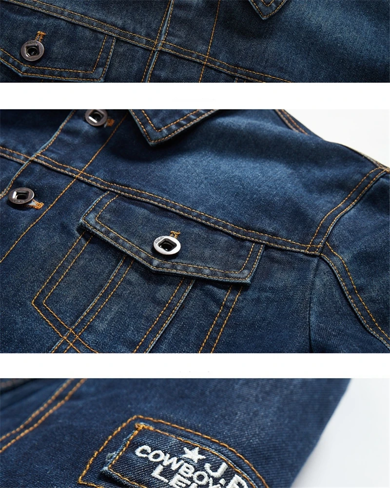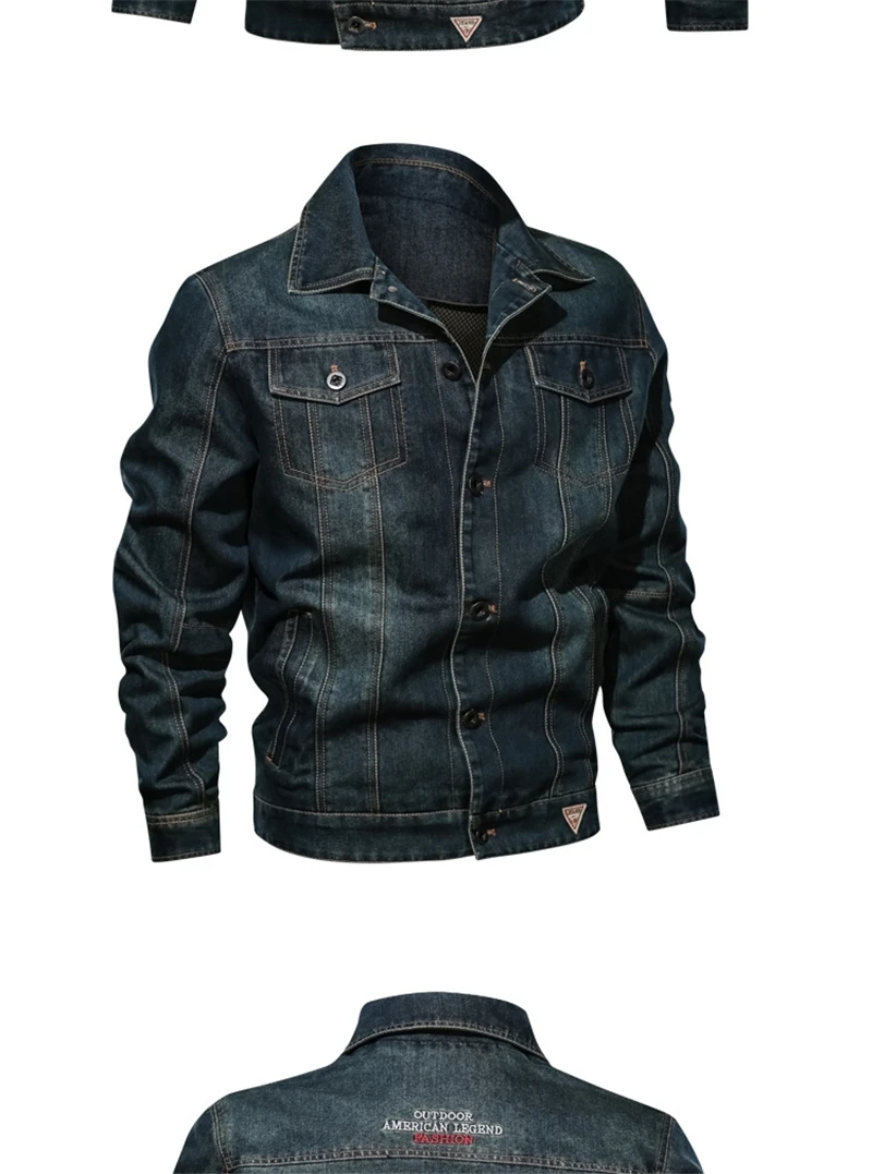 Мужская джинсовая куртка с вышивкой, однотонная однобортная куртка ...
