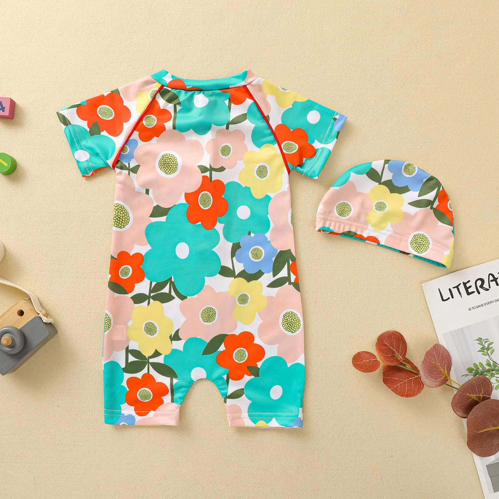 Купальник для маленьких мальчиков и девочек с мультяшными животными, комбинезон, купальник для детей, защитная шляпа от солнца для девочек, купальный костюм, одежда для детей
