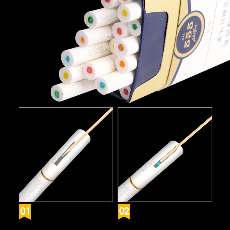 Материал: пищевой материал s Безопасно и удивительно использовать. Множество вкусов освежает ваш ум. Используйте зубочистку, чтобы вставить отверстие в держатель для сигарет, затем поместите бусины, а затем вы сможете испытать множество вкусных вкусов