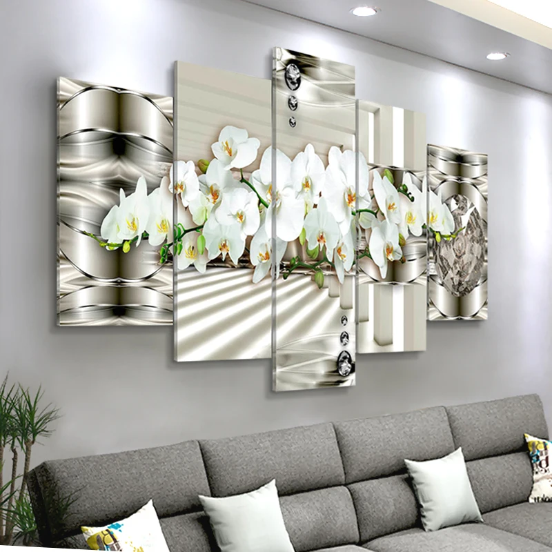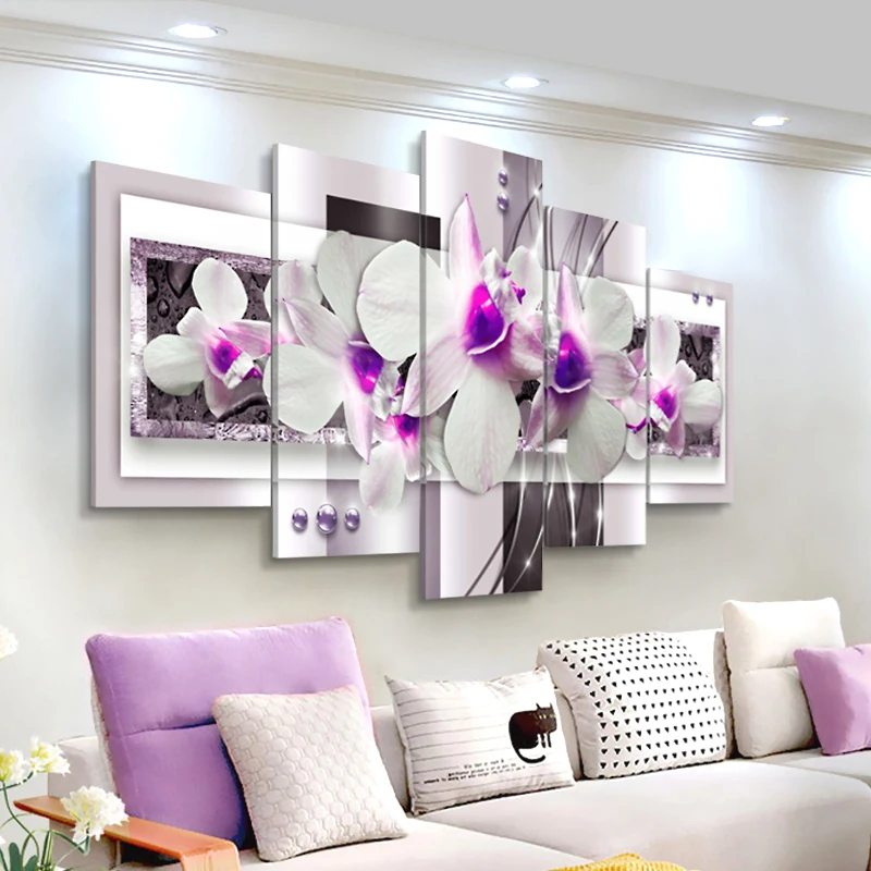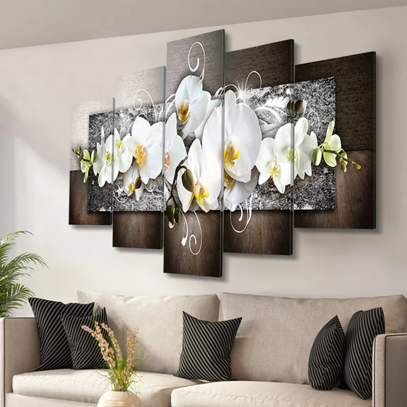 5 шт.комплект, модульные настенные картины с изображением орхидеи