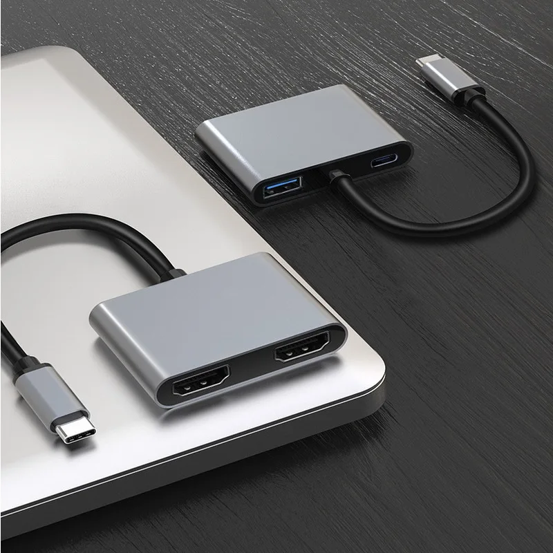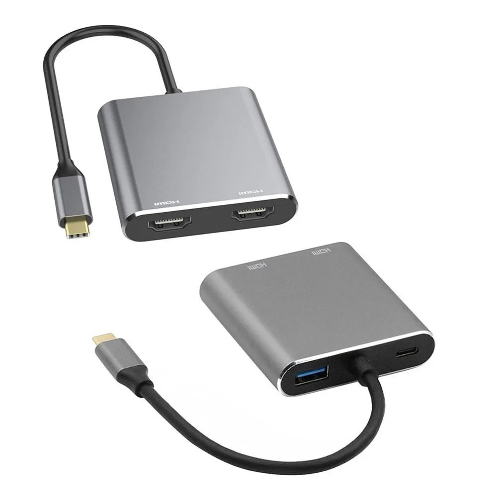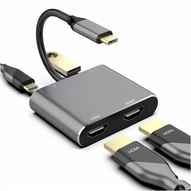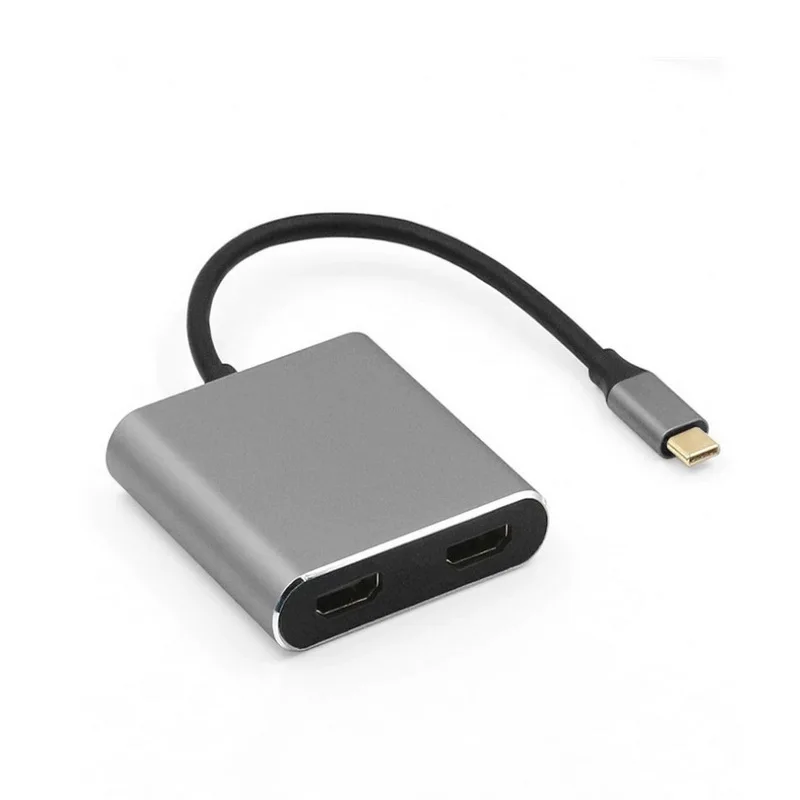 Характеристики:Цвет: серыйКоличество: 1 шт.Размер: 190*55*10 ммМатериал: металлПосылка включает в себя: 1 шт. 4 в 1 USB C к двойному адаптеру HDMI