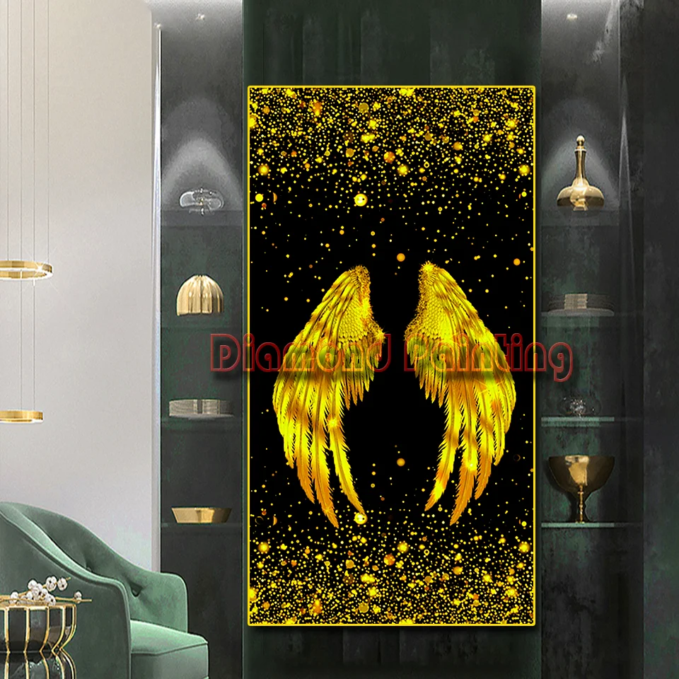 Алмазная 5D картина сделай сам, золотые крылья ангела, полная квадратная круглая Алмазная Вышивка крестиком, мозаика, искусство, ручная работа, подарок, домашний декор